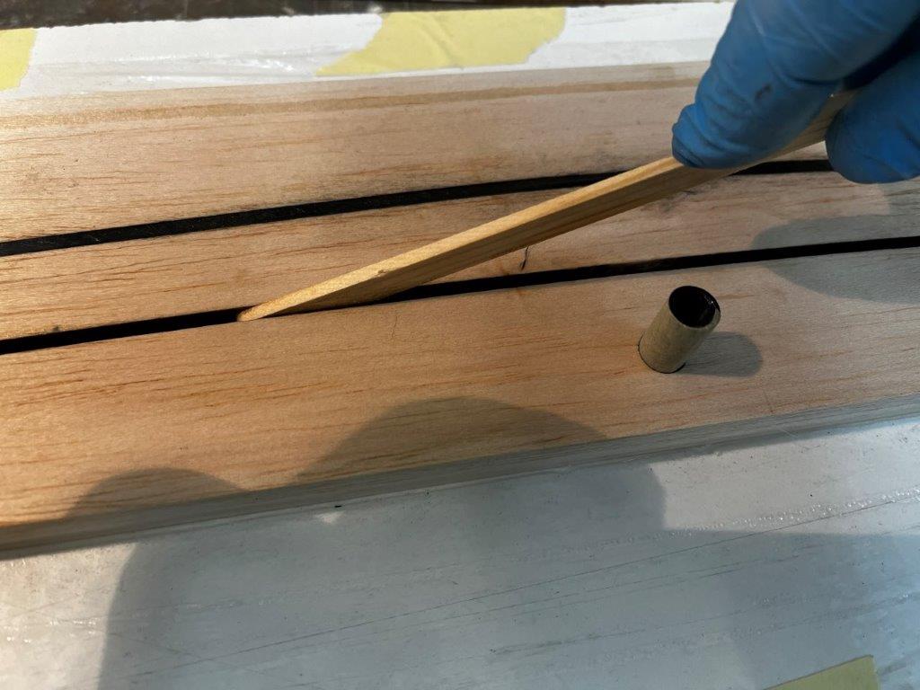 Für die Nase habe ich mir Holz vom Tischler geholt und es mittels Schablone positioniert und verklebt. Das Tolle im CAD Du siehst vorher ganz genau dass man die Treppenstufen nirgends durchschleifen kann und die Positionsschablone hilft beim ganz exakten Verkleben auf einer ebenen Platte: