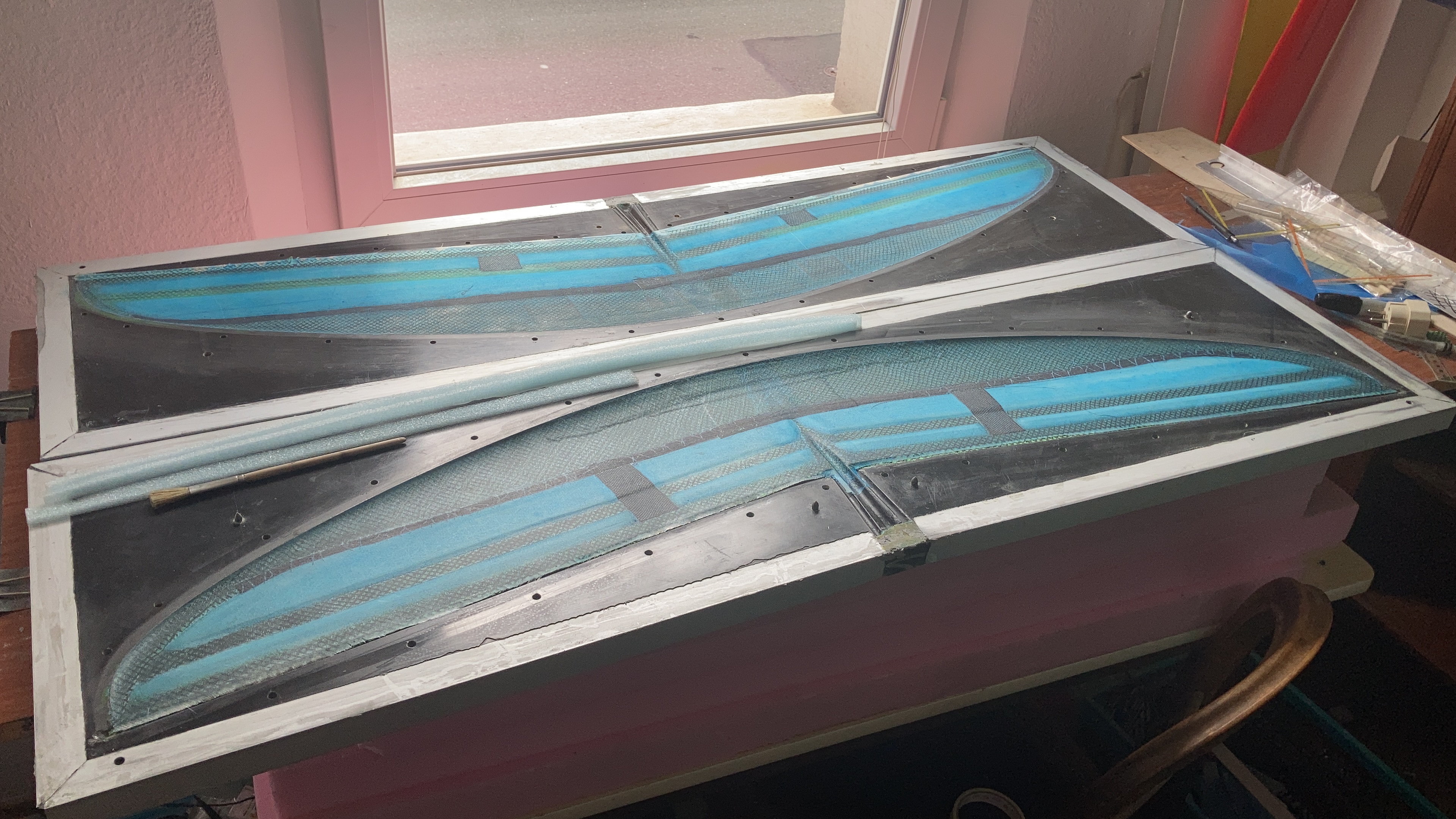 Das ganze gebaut in Vakuum Infusion. Für diesen kleinen Flügel macht es zeitlich keinen grossen Unterschied, ob mit Infusion oder Nass hergestellt. Finde die Infusion aber um einiges cleaner und sicherer.