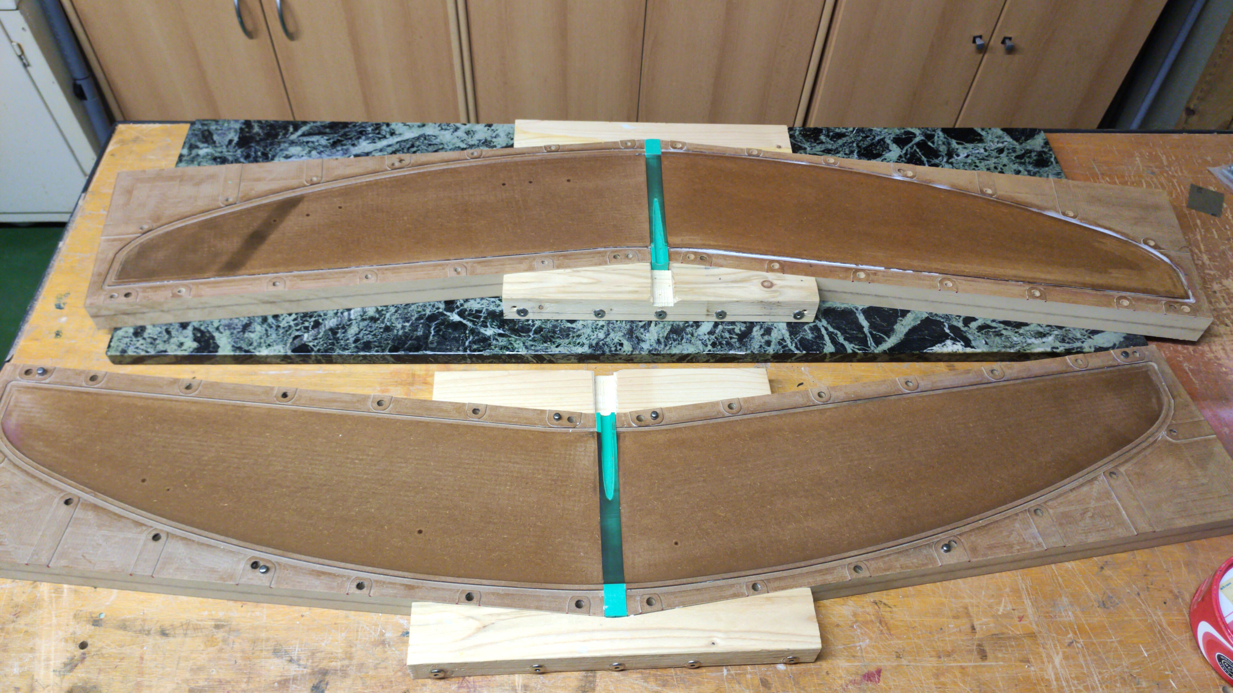 meine 1.3m, zweiteilige Version ist nun endlich auch im Bau. @Uwe vielen Dank für die Anpassungen seiner Zeit! Habe vor langer Zeit die Formen aus Sika M700N gefräst. Das Material war noch da, ist aber nicht ideal für Formen direkt im negativ. Die Formen wurden nach dem Fräsen gefillert und lackiert / poliert. Der Verbinder liegt im Schwerpunkt, damit man Verbinder mit unterschiedlichen Gewichten verwenden kann.