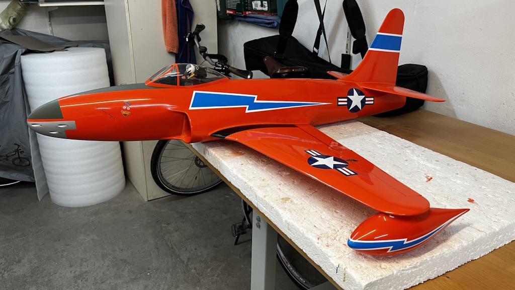 1999 hatte ich diese schöne Eigenbau P80 mit GFK Rumpf gebaut mit 90er Eigenbau Impeller an 12 Sanyo Zellen, das war ein ganz toller Flieger.