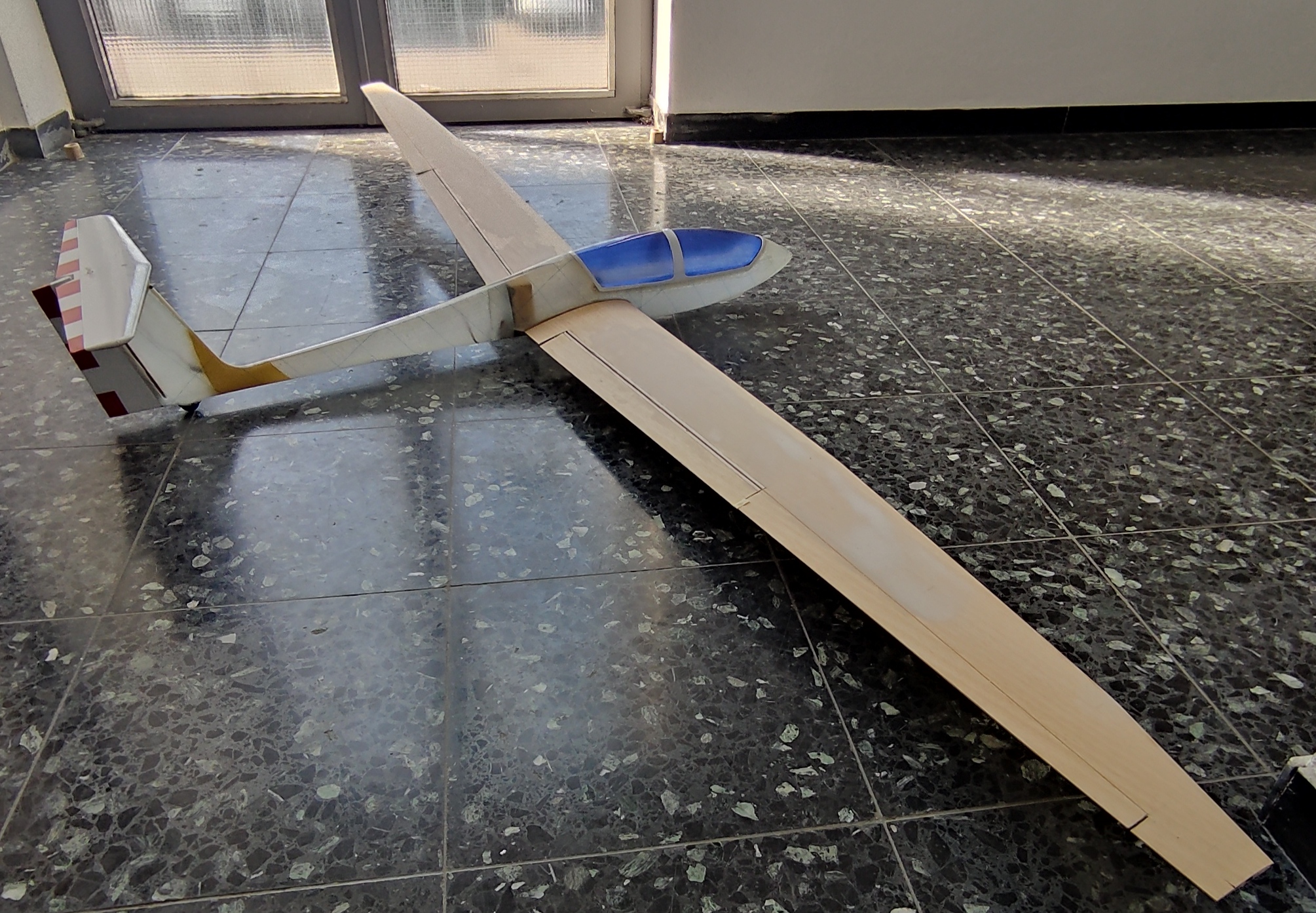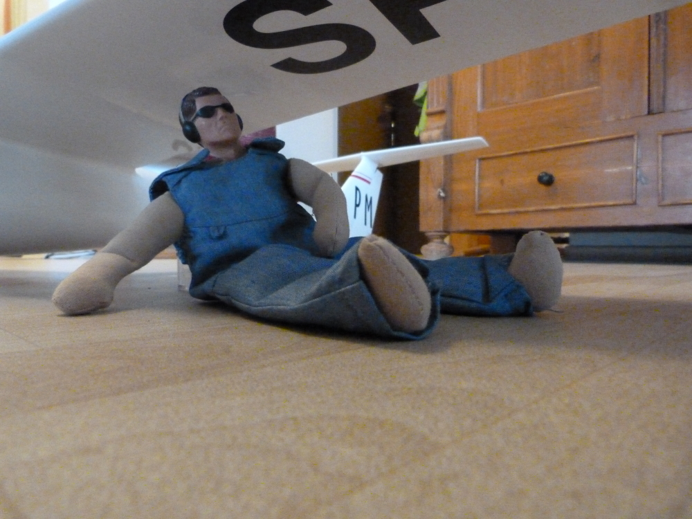 Es fehlt noch der Akku und das Ausgleichsgewicht am Höhenruder aber für ein Fotoshooting mit Ed musste Zeit sein.