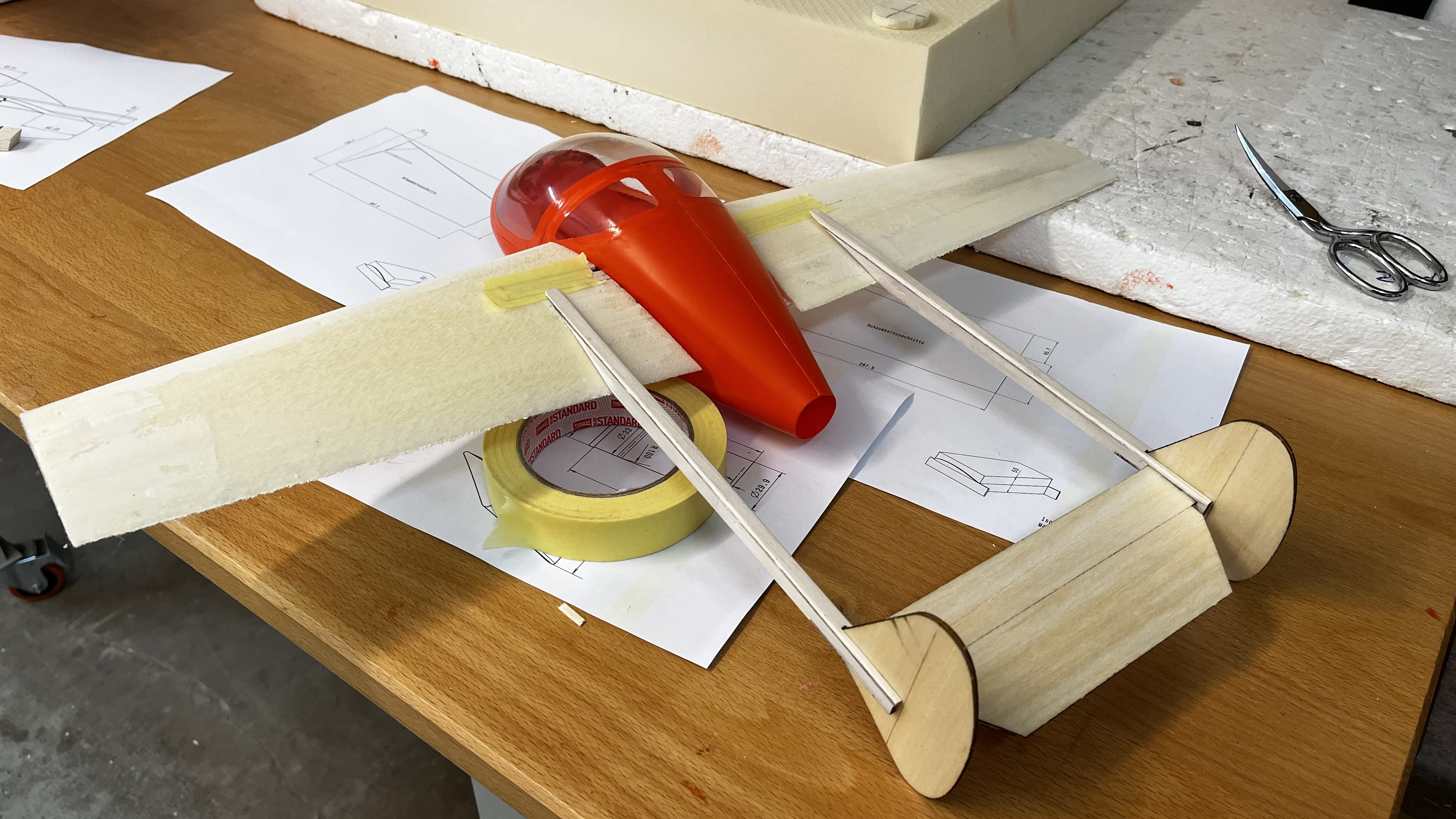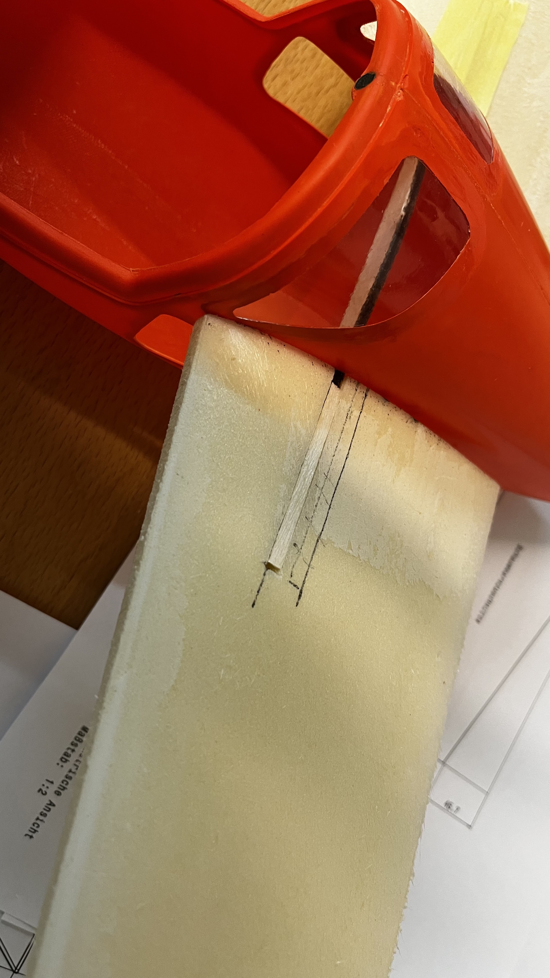 Heute den Verbinder in den flügeln positioniert und die durchbrüche im rumpf positioniert