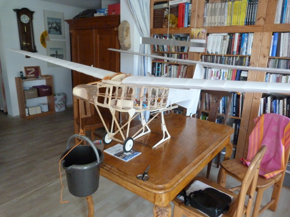Am Donnerstag wieder ein Flugversuch – diesmal mit Motor und den „großen“ Originalschwingen.