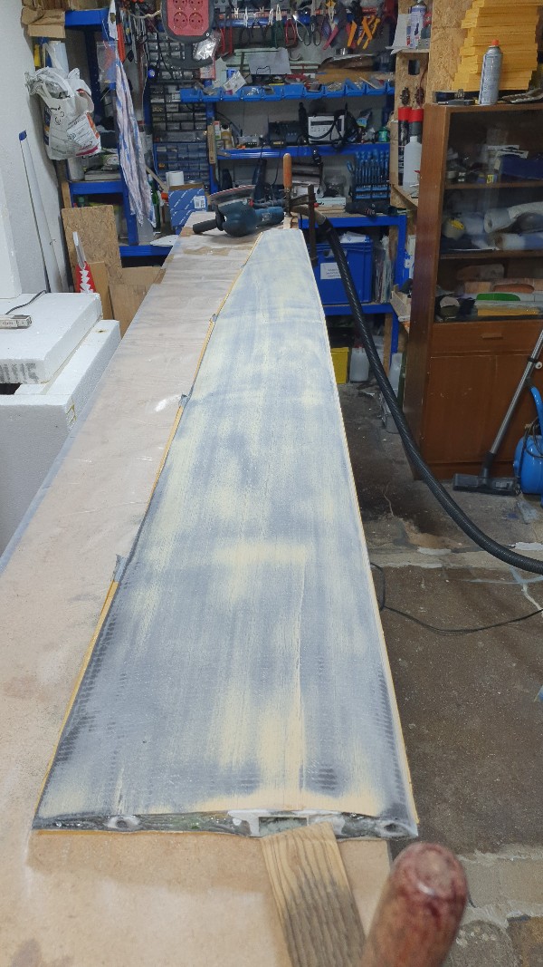 Auch kannst du ohne jeglichen Verlust der Stabilität einfach das Abachi richtig weit runterschleifen und erreichst dann nochmal geringere Gewichte, da ja dann quasi nur noch das Gelege drauf ist und alles was nicht zur Stabilität beiträgt, also das Abachi, das schön mit dem überflüssigen Harz getränkt ist, weggeschliffen wird. XPS oder Dur kann, im Gegensatz zu Por auch nicht das überflüssige Harz aufnehmen, da die Poren ja fein und geschlossen sind. Man hat dadurch also mit viel weniger Aufwand, eine viel Profilformtreuere, leichtere und dabei deutlich stabilere Tragfläche.