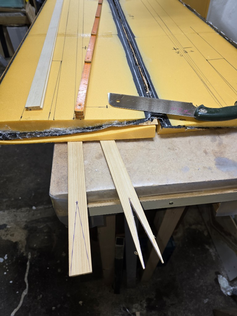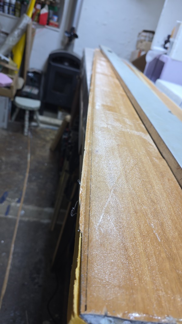 Ich will ja kein unnötiges Gewicht mit mir rumfliegen, was nichts zur Stabilität beiträgt, sondern eher zu einer "Glashärte", also zu einer erhöhten Bruchempfindlichkeit führt am Ende. Also wird das Furnier natürlich niemals gesperrt sondern darf und soll das Harz, das ja nicht in das XPS eindringen kann, im Gegensatz zu Styropor, was "zuviel" ist aufnehmen.