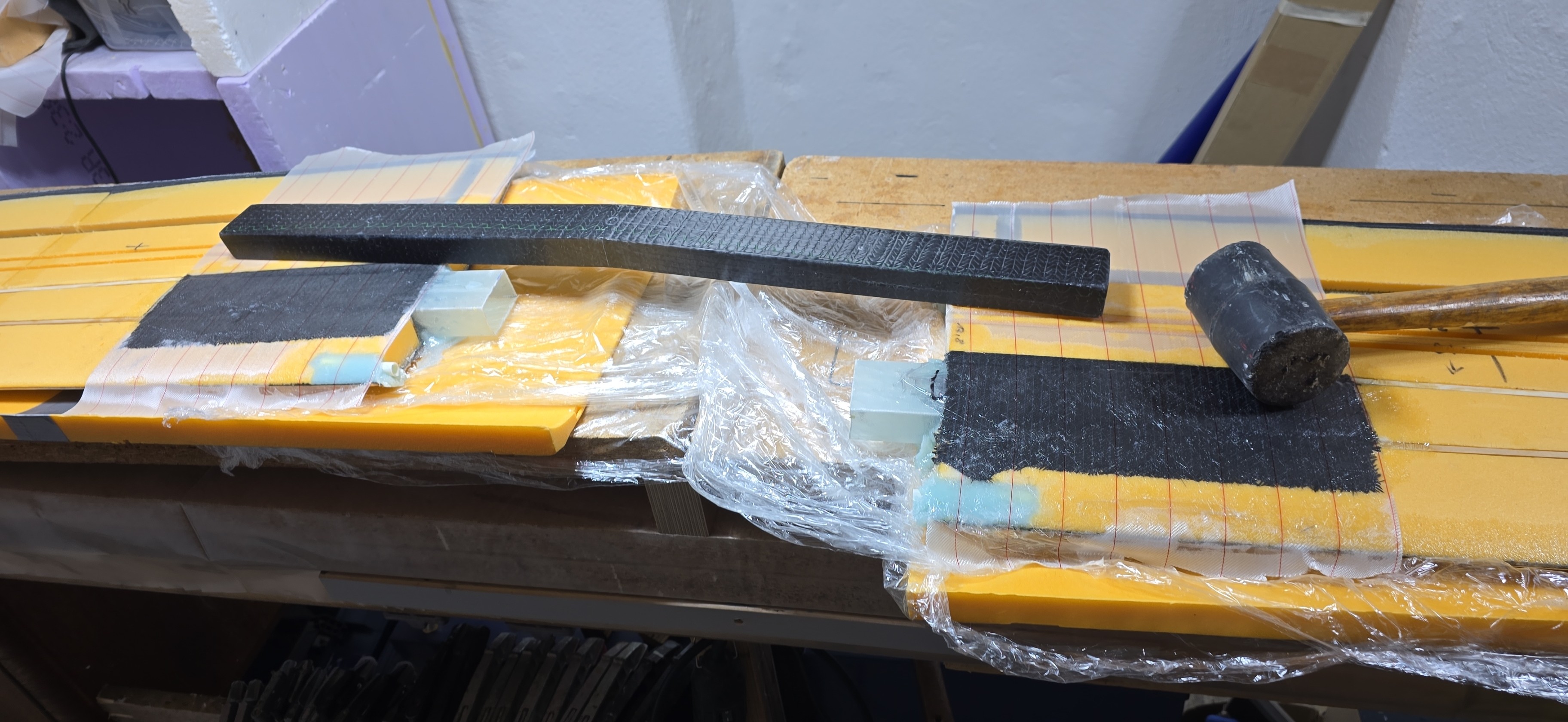 Kerne sind verklebt, Schalen sind getaped, jetzt geht's ans Gelege und Furnier schneiden, morgen kommt dann die erste Hälfte in den Sack.