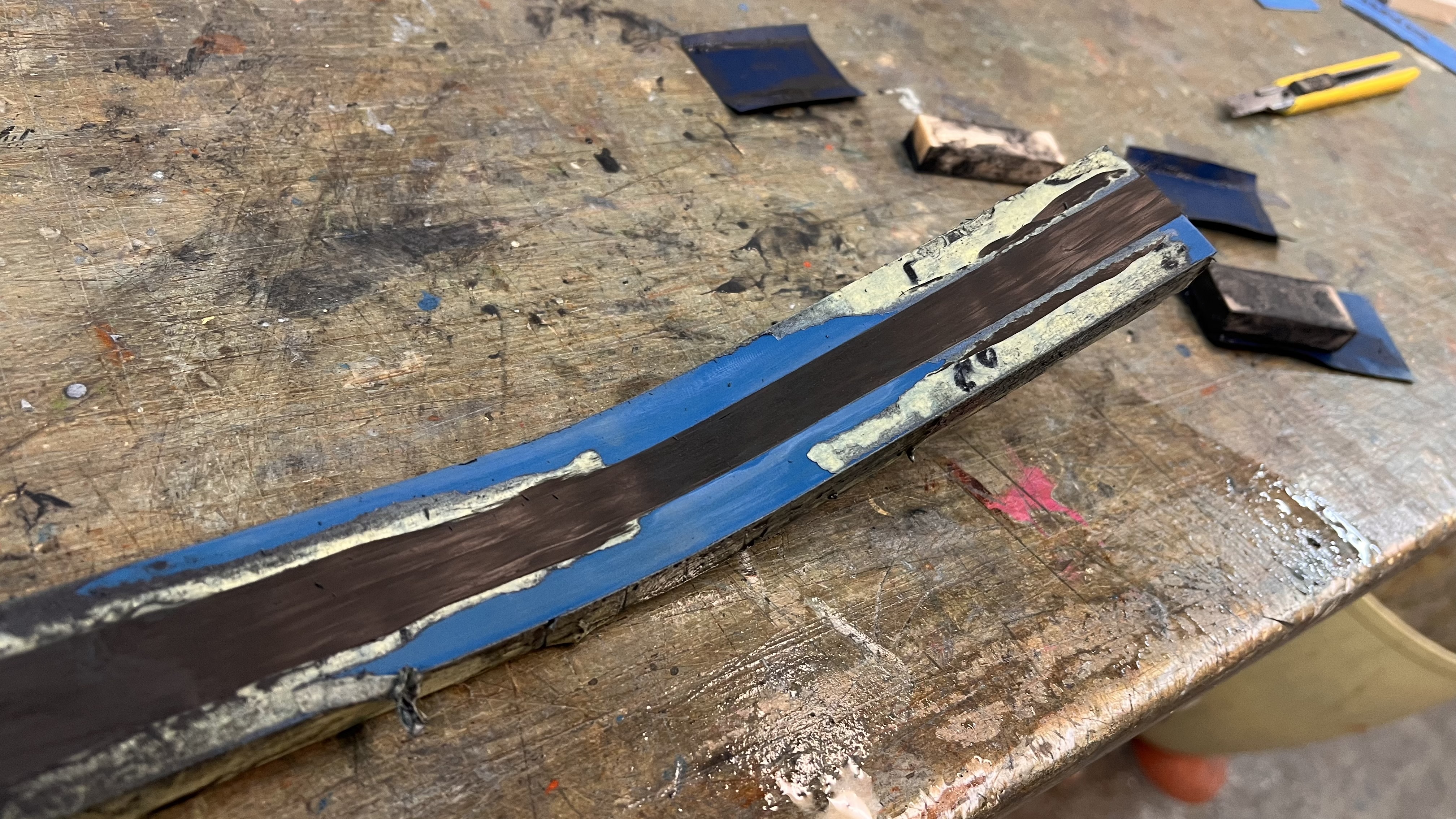 Zunächst Vorgelat grau dann 2 lagen 105 gr glas diagonal danach 3 sehr grobe lagen cfk diagonal und paar rovings