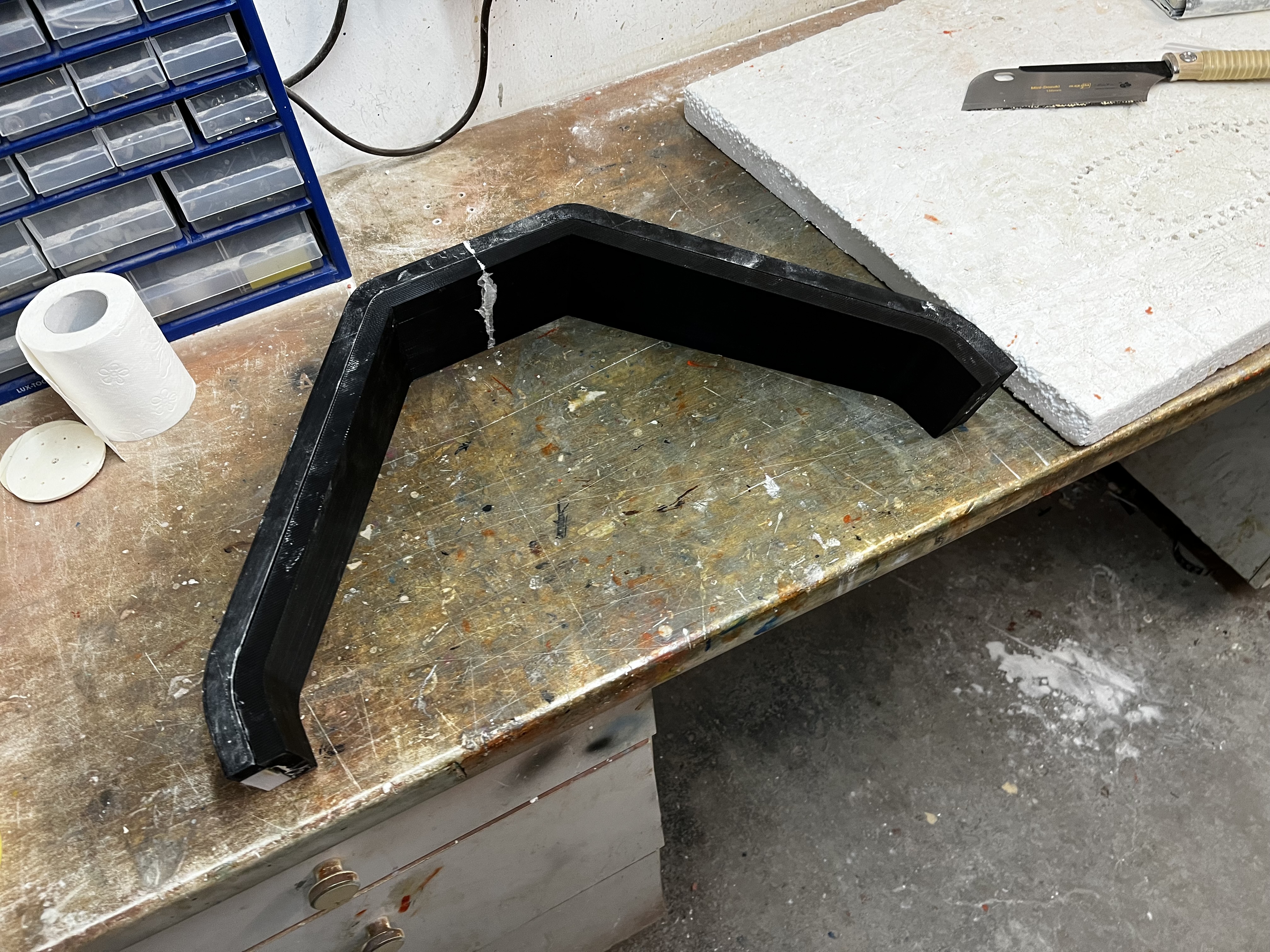 Ich hatte eine Form gedruckt, die war f den ganzen Bügel / is schwerer zu montieren am späteren Flieger. ABER in der Form hatte ich erst ne feine leichte Glaslage und dann glaube so 3. - 5 Lagen sehr grobe kohlefaser. Verklebt habe ich dann blind. 1 seite is ok geworden die andere hatte zu viel versatz.