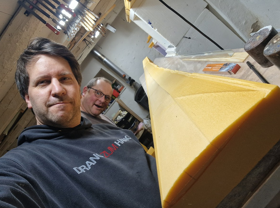 Stephan hat sich monatelang in die statische Auslegung reingefuchst, Uwe hat uns zwei tolle Aerodramatiken gezaubert, eine für die 15m und eine für die 18m -Version und an mir ist es jetzt, das Urmodell zu finalisieren und die Kerne zu schneiden.
