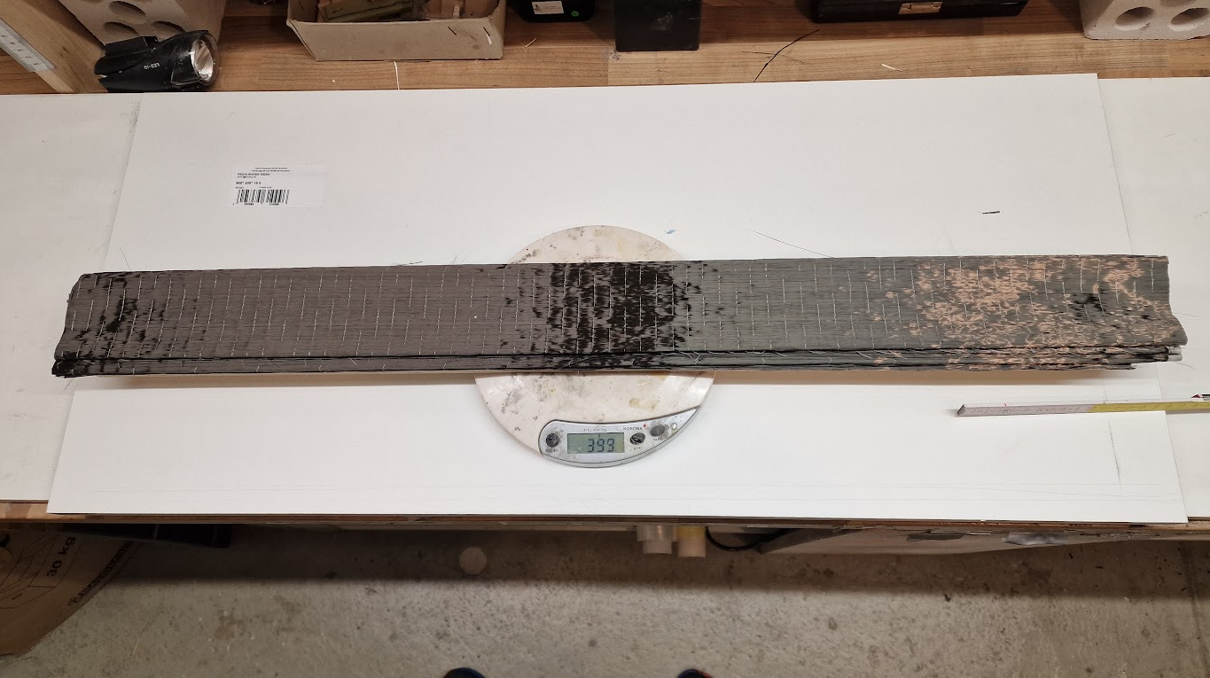 Mit 5 Lagen 300er HT-UD im Zuggurt und 7 Lagen 300er HT-UD im Druckgurt und 3 XPS Kernen mit je 2 mal 3K Schläuchen sollte er rechnerisch 20g aushalten. Bruchversuch steht noch an. Hab einen zweiten Verbinder zum Zerstören gebaut, interessiert mich mal wie weit Theorie und Praxis auseinander liegen.