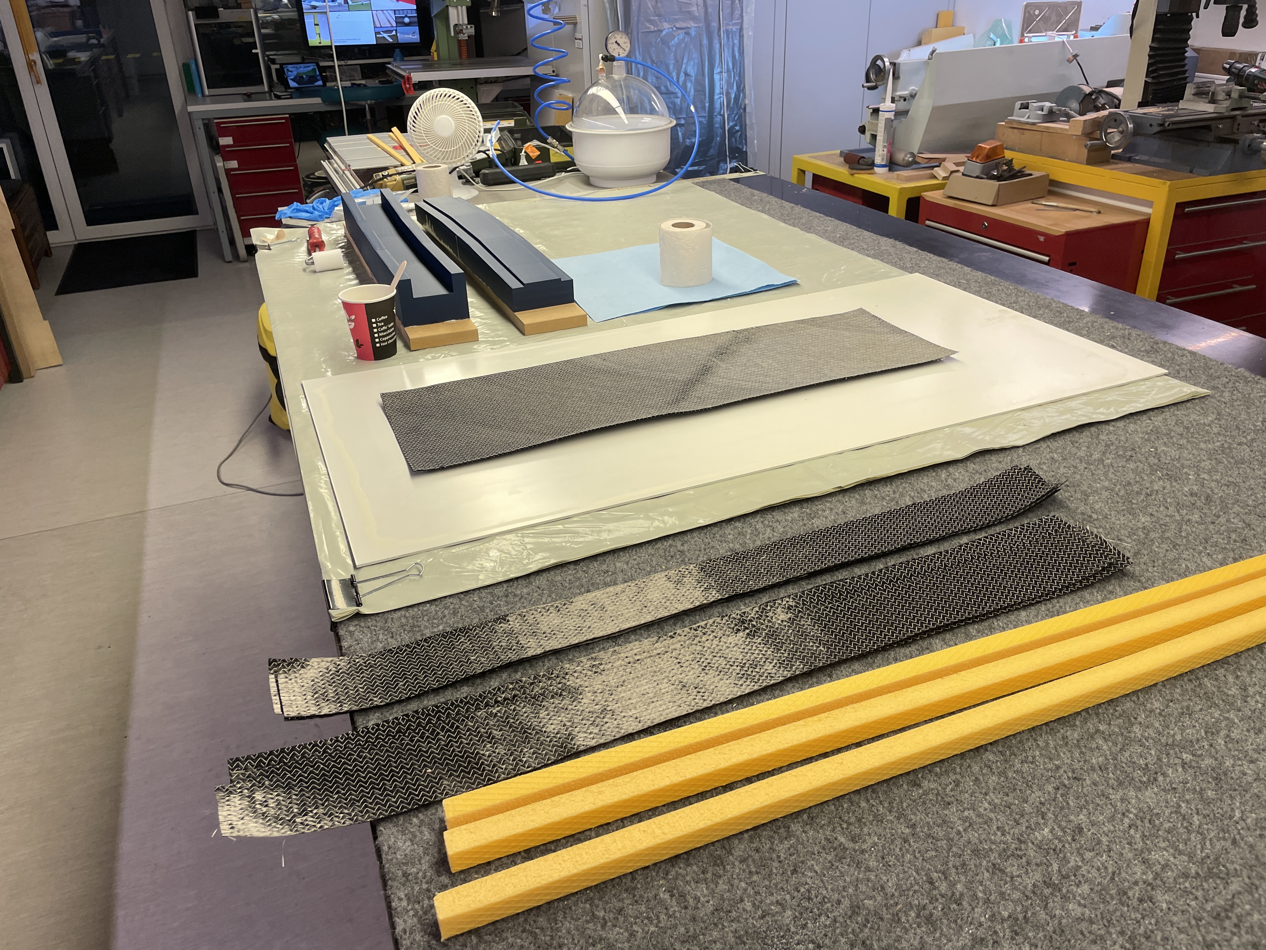 Stephan, sieht gut aus ! Rohacell anstatt Balsa stehend wäre zwar auch gegangen, weniger Arbeit, aber auch deutlich teurer.