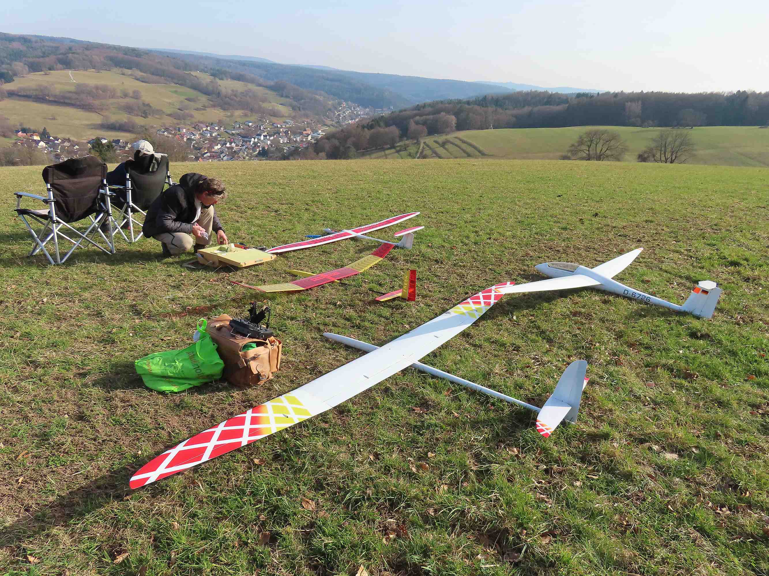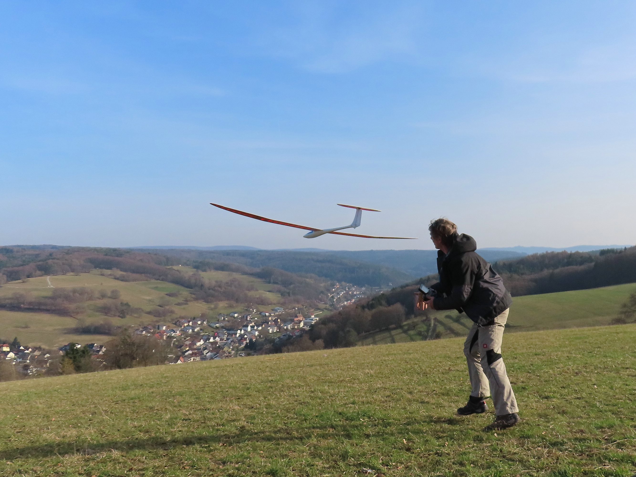 Heute war auf dem Bielmonte, wie vorhergesagt, Vormittags schönstes Thermikwetter mit teils heftigen Ablösungen, nur hatte ich die ehrlich gesagt in der Stärke um kurz nach 9:00 Uhr noch nicht erwartet, ich war also nur mit dem Spinnin Birdy vorne und hätte locker die hArdstyLePINA fliegen können... Aber auch das Birdy hat richtig viel Spaß gemacht und um 10:30 Uhr kam, wie vorhergesagt, die Wolkendecke an. Kurz vor Sonnenuntergang war dann nochmal Sonne angesagt, allerdings mit Wind quasi parallel zum Hang. Morgen soll es super sonnig werden, da kommt dann auch die hArdstyLePINA und Sackgitter mit vor.