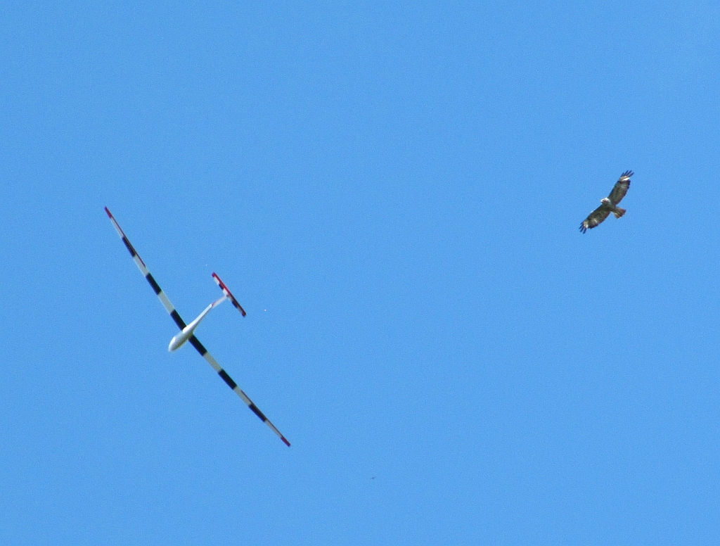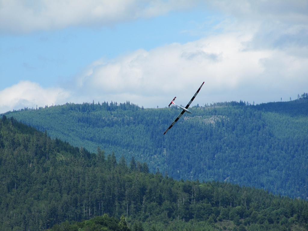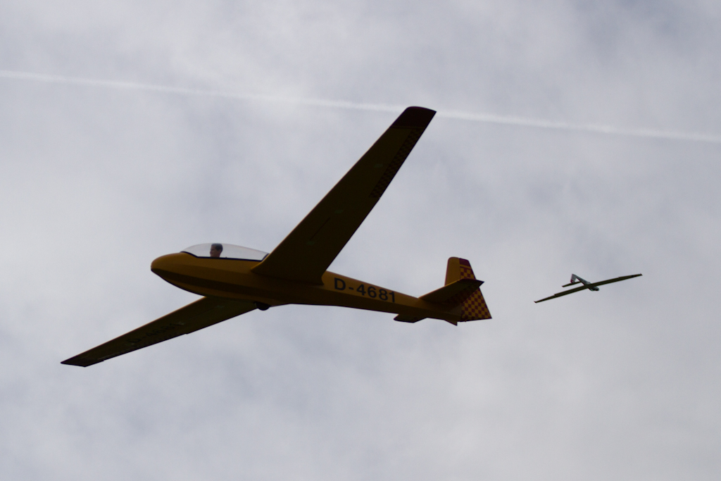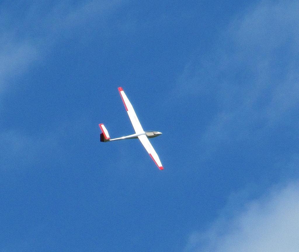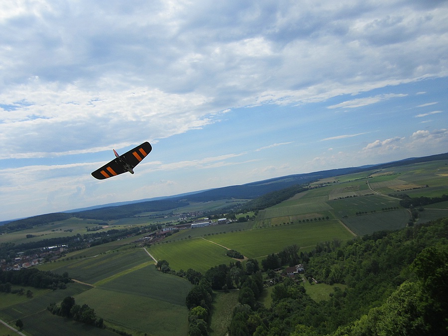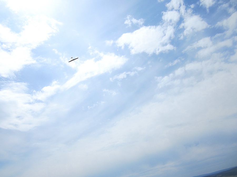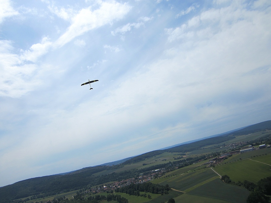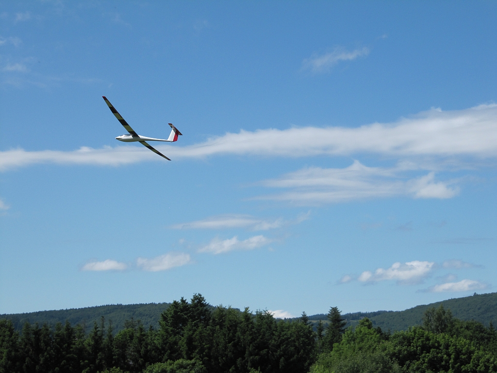 Das war zu dem Zeitpunkt auch gut so, denn von Bruchsal in Richtung KA kam plötzlich eine echte DG1000 in Augenhöhe und sau dicht an der Kante entlang. Hab mir vor Schreck fast ins Höschen gemacht. Ca. 15 Minuten später kam die DG1000 wieder zurück. Dieses Mal war ich geistig vorbereitet, und hatte auch immer wieder nach ihr gekuckt. Die kam sogar noch ein Stück tiefer vorbei, also unterhalb meines Standplatzes.