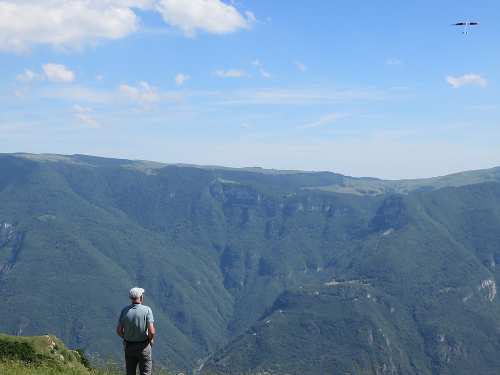 Der Lilloo durfte ein paar Flitschenstarts machen, aber an dem weitläufigen Hang ist er wegen der Sichtbarkeit nicht das optimale Fluggerät für schwaches Wetter.