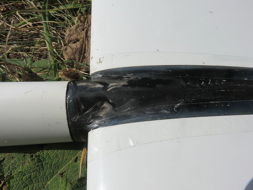 Der Rumpf war schon drei mal an der gleichen Stelle vor der Nasenleiste durch gebrochen. Die Reparaturen von außen haben die Landungen nicht ausgehalten und von innen kommt man wegen dem reparaturunfreundlichen RC-Schwert eigentlich nicht dran. Ich hab das Schwert letztlich mit einer Oszillationssäge rausoperiert, von innen mit Basaltgewebe verstärkt und von außen wieder Kohlegewebe eingeschäftet. Dabei habe ich auch die Anlenkungen ausgetauscht die für brummen der Leitwerksklappen gesorgt haben. Ich hab zwar wieder Glaszüge rein gemacht, aber die Außenhüllen sind so lang wie möglich geblieben und statt den 2 mm mit dünner Glasseele und Teflonummantelung sind jetzt 2 mm GFK-Vollstäbe drin....mal sehen obs dieses mal mehr als 300 km/h aushält.