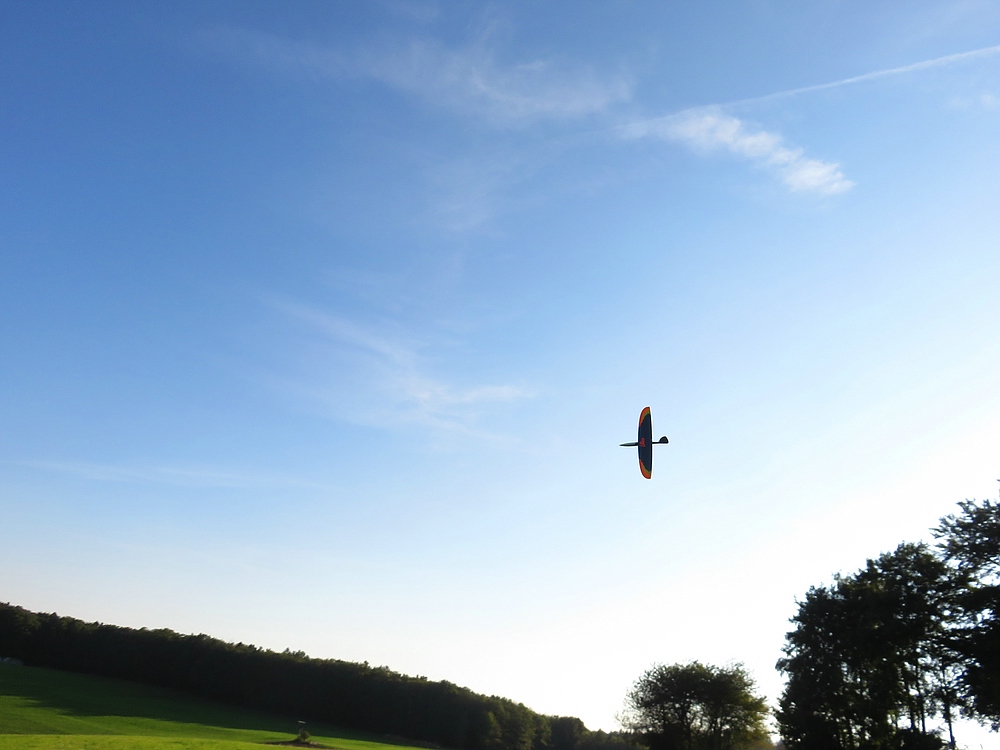 Heute zum Feierabend eine Stunde gemütliches Thermikfliegen am Osthang mit Needle100DSL und bei nachlassendem Tragen dann mit Avatar.