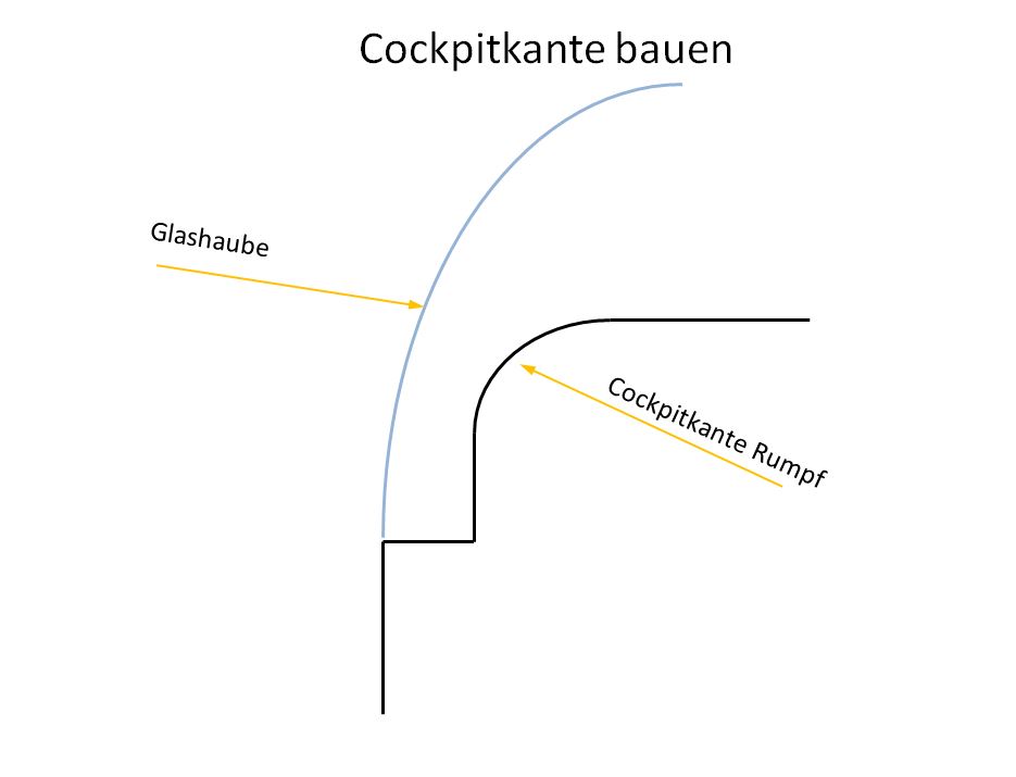 Mich nervt immer, wenn die Haubenrahmen nicht 100% passen, sprich, rumwackeln statt perfekt aufzuliegen. Zudem ist es immer ein doofes gefrickel, bis man den perfekten Abstand für das Haubenglas rangeschliffen hat. Also hab ich mir Folgendes überlegt: Ich fülle beim Urmodell die Rahmensicke mit Plastilin auf, warte bis das schön kalt ist und schneide dann die Oberfläche eben zum Rahmen und für das Haubenglas lasse ich eine Nut von etwa 2mm zurückstehen.