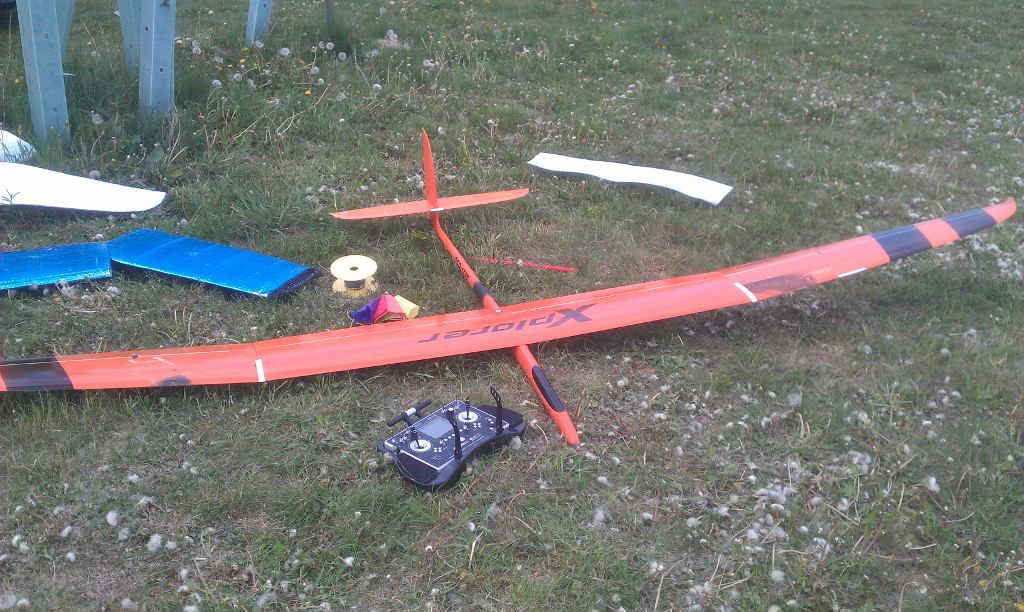 nachdem am Wochenende mein Silk beim Hochstart der Ansicht war, dass Tragflächen überbewertet werden, war es an der Zeit für schnellen Ersatz. Zum Glück hatte ein Modellflugkollege Mitleid und noch einen betagten Flieger übrig.