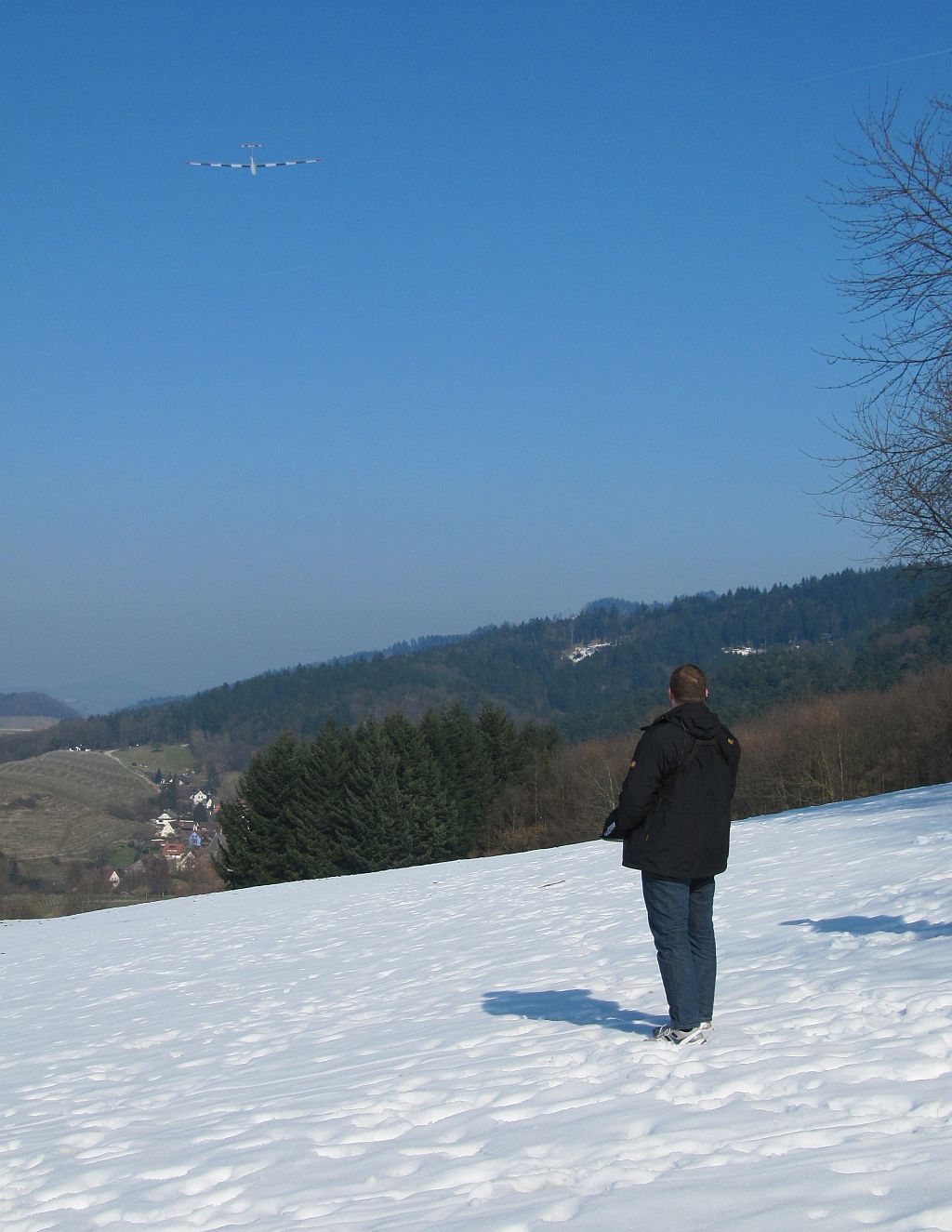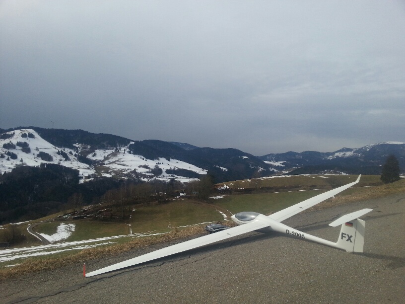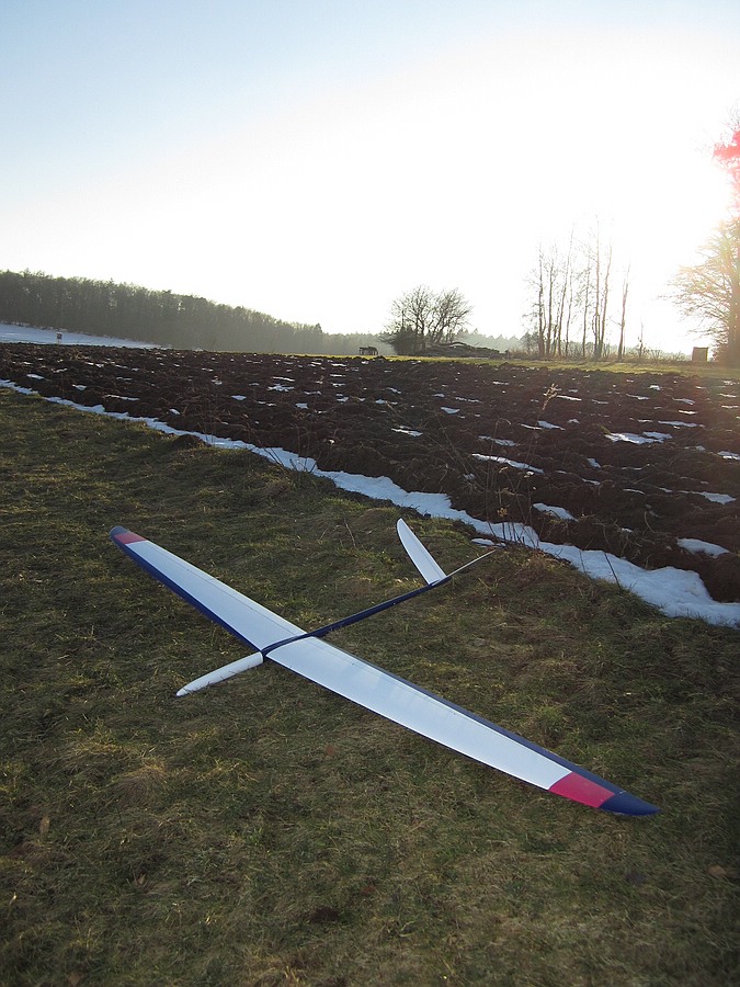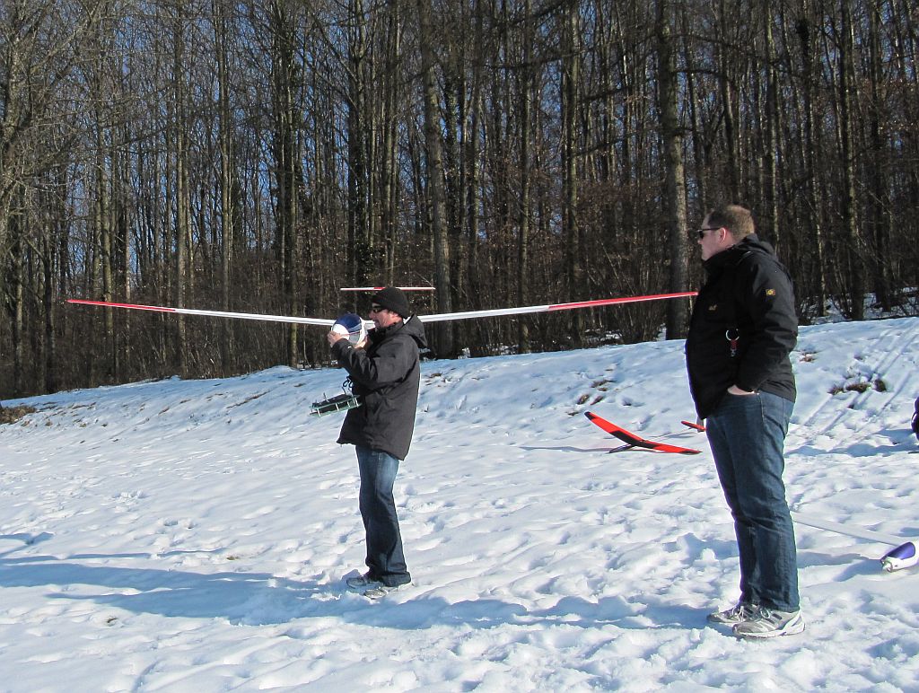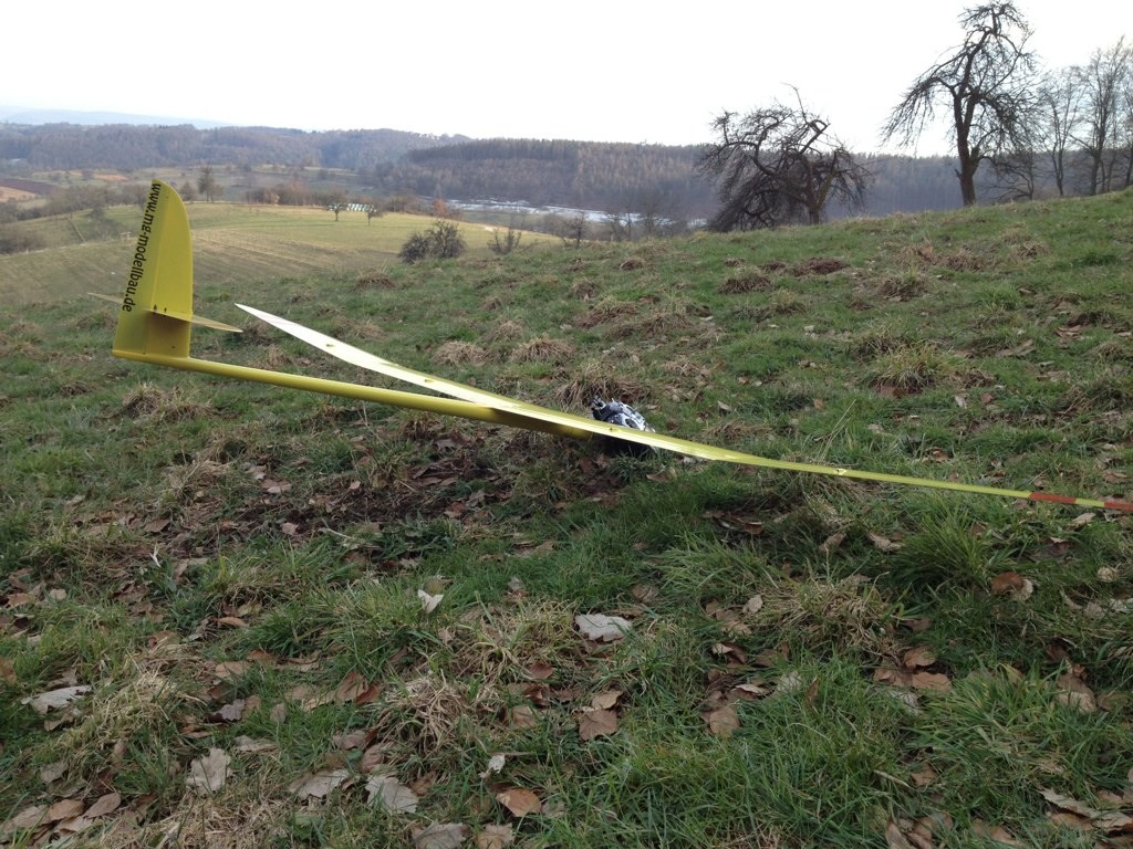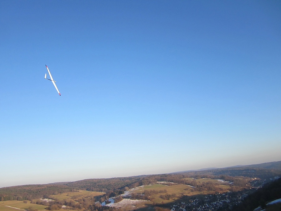 Heute hat das Autothermometer -4° angezeigt und der Wind war deutlich kräftiger, kein Wunder dass ich alleine an meinem Ost-Haushang war, ich habs auch nur ein Stündchen ausgehalten bevor der Drang zu Heißgetränken übermächtig wurde. Das Tragen war für die fehlende Sonneneinstrahlung überraschend differenziert, bei starkem Wind wurde es einfach nur bockig, bei nachlassendem Wind gings rauf oder es war schnelles und enges fliegen in Bodennähe möglich. Trotz der Kälte hab ich ein paar Videosequenzen vom Shooter gemacht, incl unbeabsichtigtem touch-and-go-Start. Ich versuch mal was kurzweiliges zusammen zu schneiden, bis da hin erstmal die Bodenbilder: