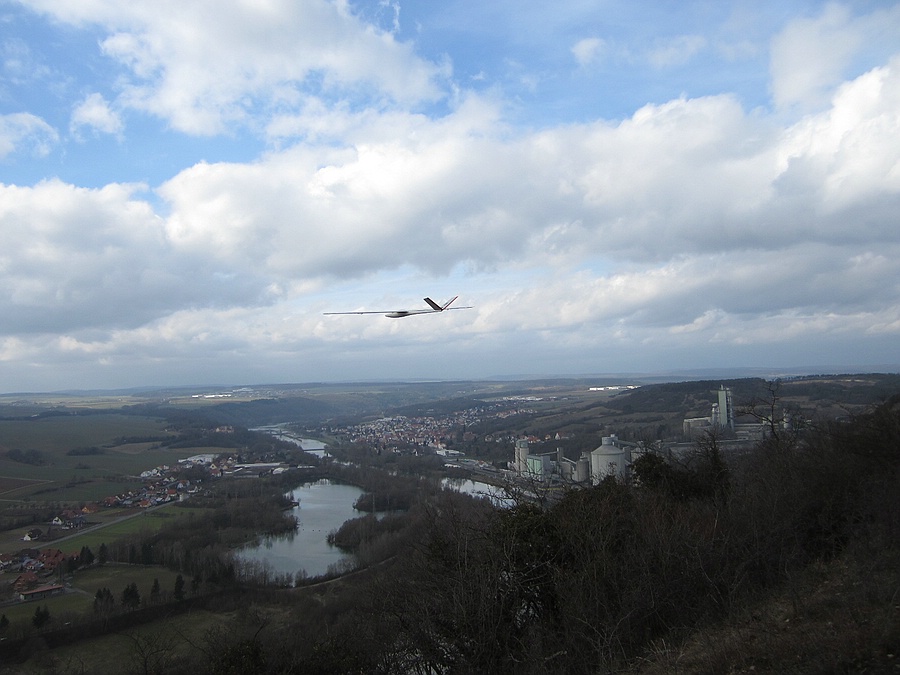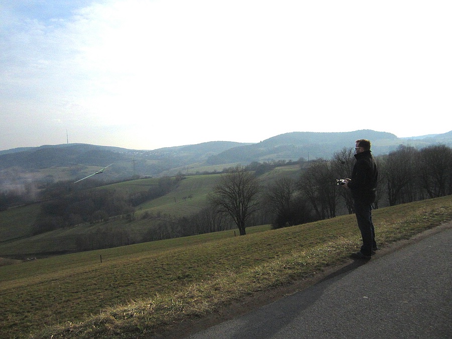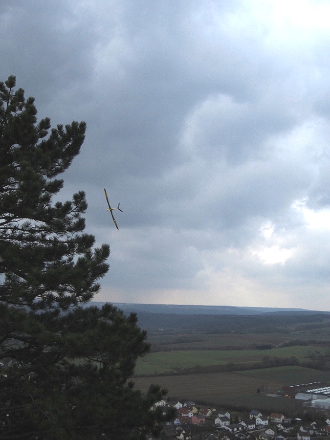Der Flieger machte bei den schwachen Bedingungen einen ausgezeichneten Eindruck und die Vorbeiflüge aus der bei dem schwachen Tragen relativ geringen erreichbaren Höhe lassen für die guten Tage extrem viel Spaß erwarten 8-)
