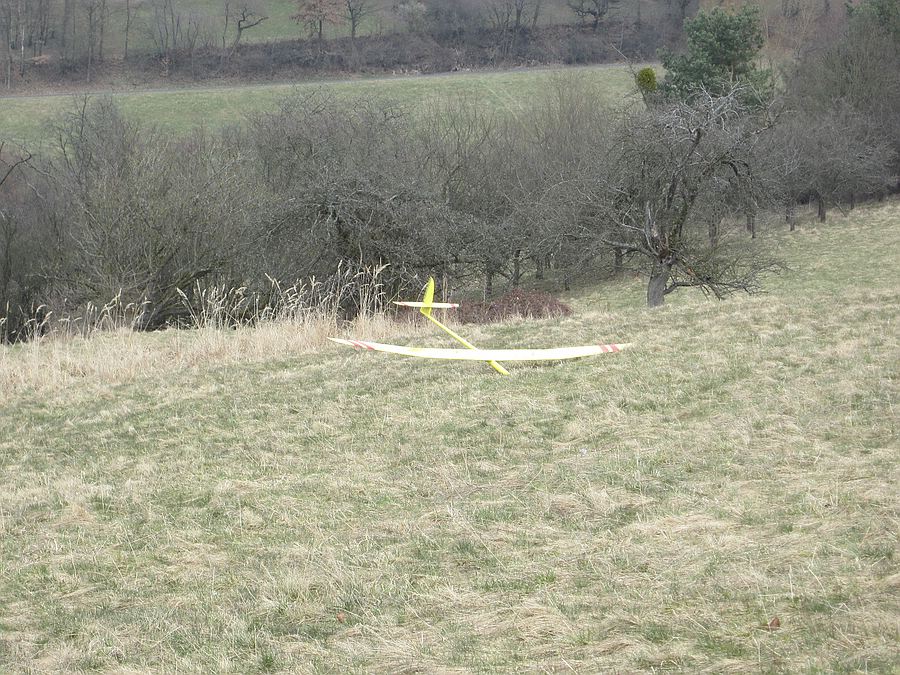Hatte heute drehende Winde. Das hat mal wieder meine Jaro Müller-Gedächnis-Sollbruchstelle beansprucht... :oops: Naja...das Rumpfboot ist schon wieder drangepuzzelt. :thumbup: WEr landet sollte vorher den Wind beobachten und nicht erst im Landeanflug :lol: