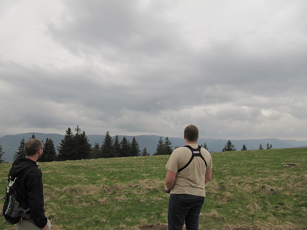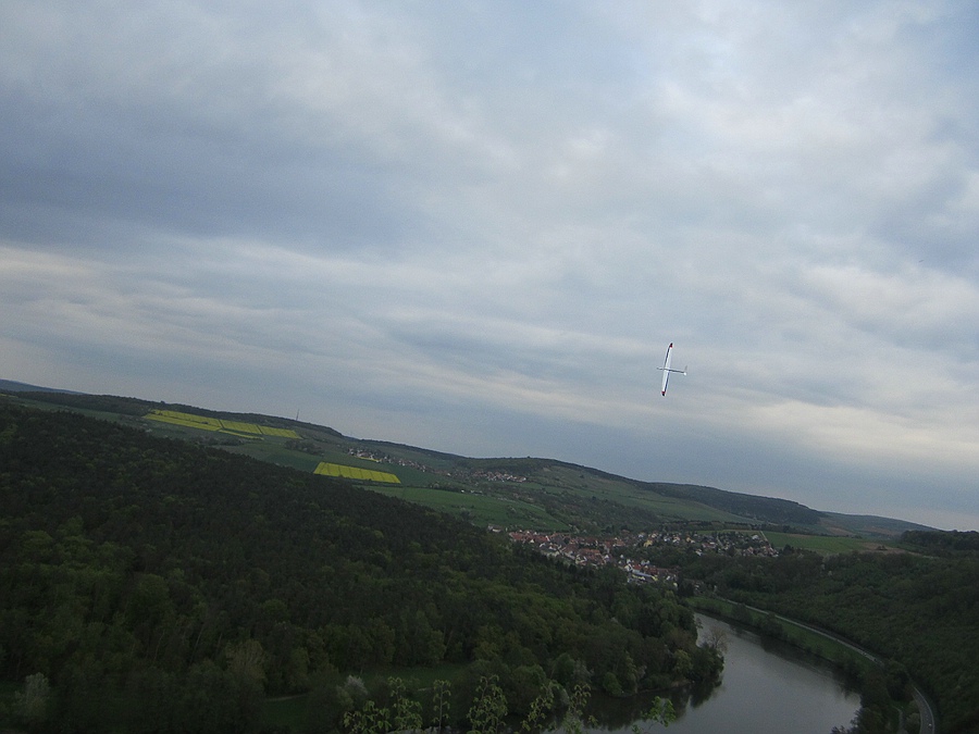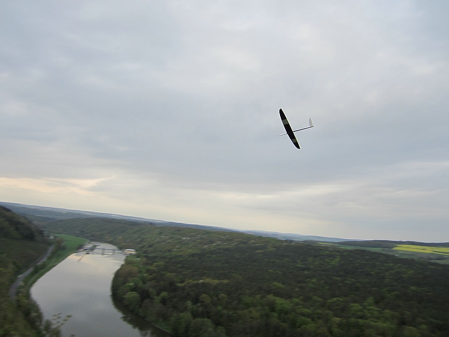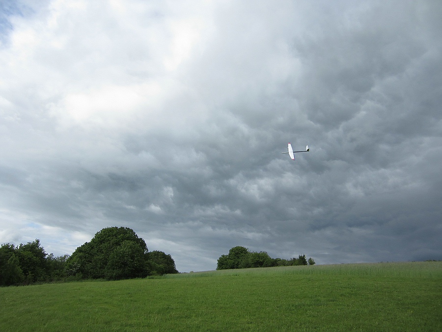 Hier war die Thermik nicht so stark ausgeprägt weil die Sonne erst spät durch die trübe Suppe kam und der Wind war auch nicht konstant, so dass die Fliegerei an dem Hang ohne Aussenlandemöglichkeit recht spannend war, der Hans mit seinem motorisierten Hype-Schaum-Whow hatte es da leichter, aber die Stunde Feierabendfliegen an der frischen Luft hat auch mir viel Spaß gemacht.