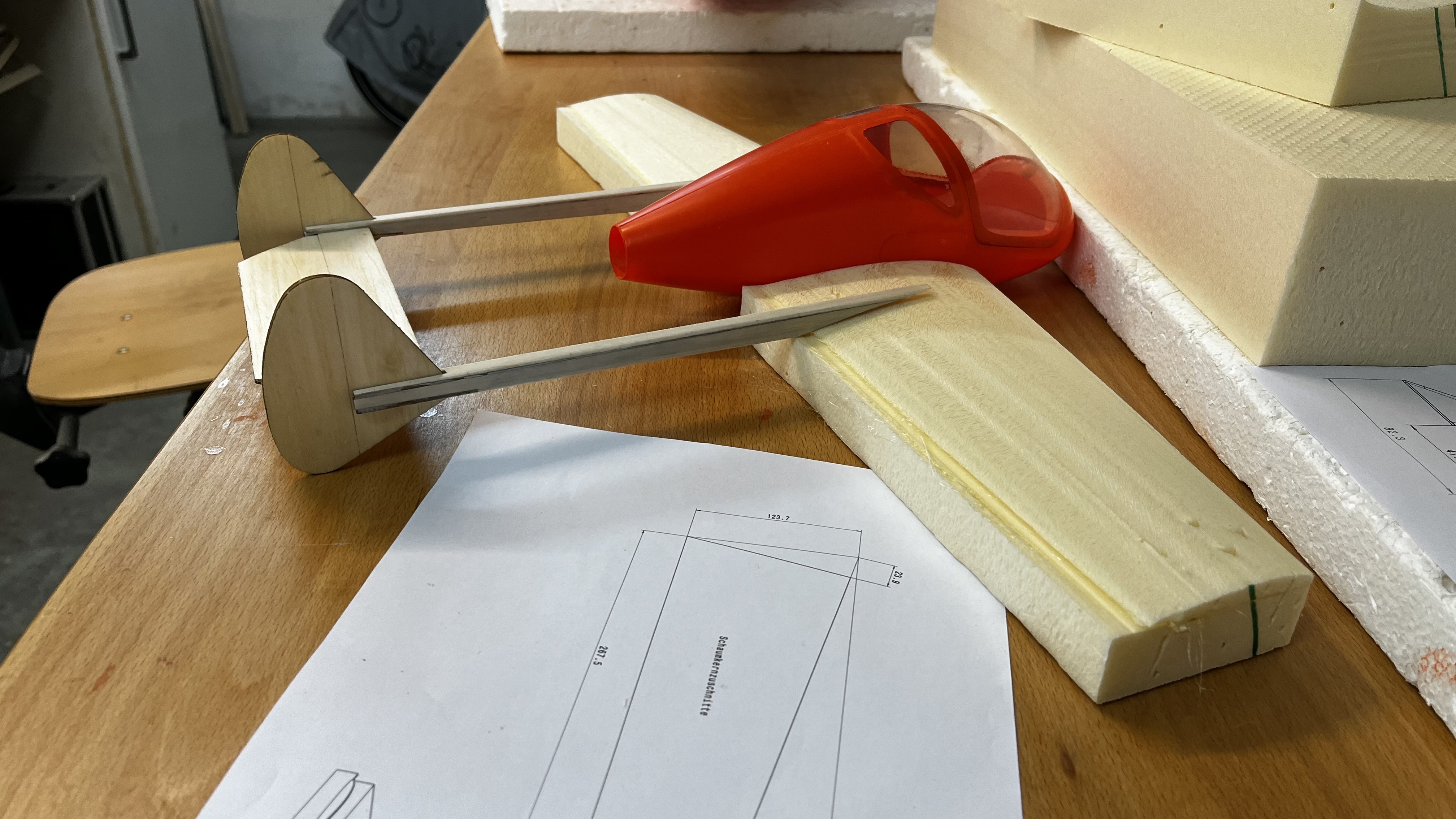 Heute den Verbinder in den flügeln positioniert und die durchbrüche im rumpf positioniert