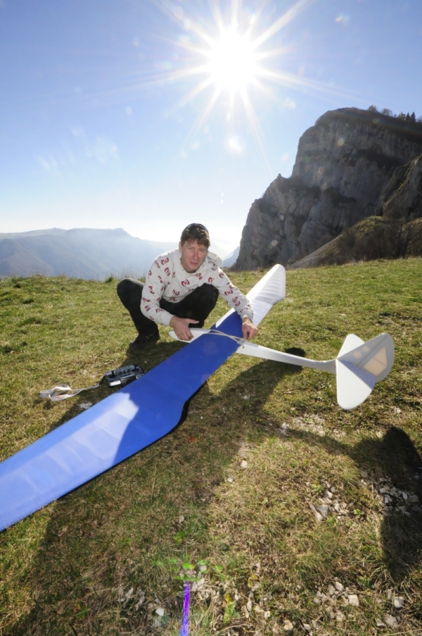 Die Bedingungen waren bei Ankunft nicht gerade vielversprechend. Also das Leichte Besteck (EVO-XL- F5J) ausgepackt. Na ja der erste Flug war unten rum bis ca 150m sehr Dünn, oberhalb ging es dann, je höher man kam immer besser.