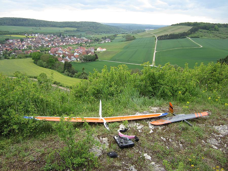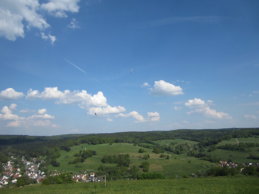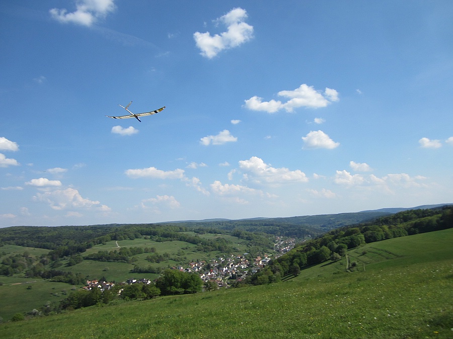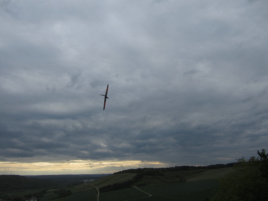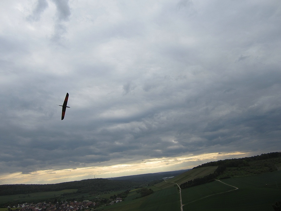 Heute ein gutes Stündchen gemütliches Feierabendfliegen am Weinberghang bei ~ 3 Bft, sogar das kleine schwarze Miststück blieb oben ;-)