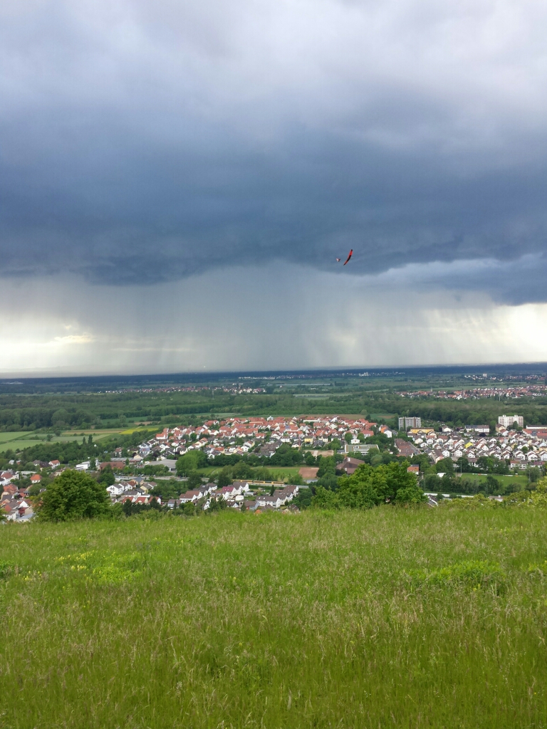 2min motorlaufzeit haben dank ausreichend thermik für gut 75min fliegen gereicht! Es wäre noch länger gegangen, aber jetzt kam der Regen....