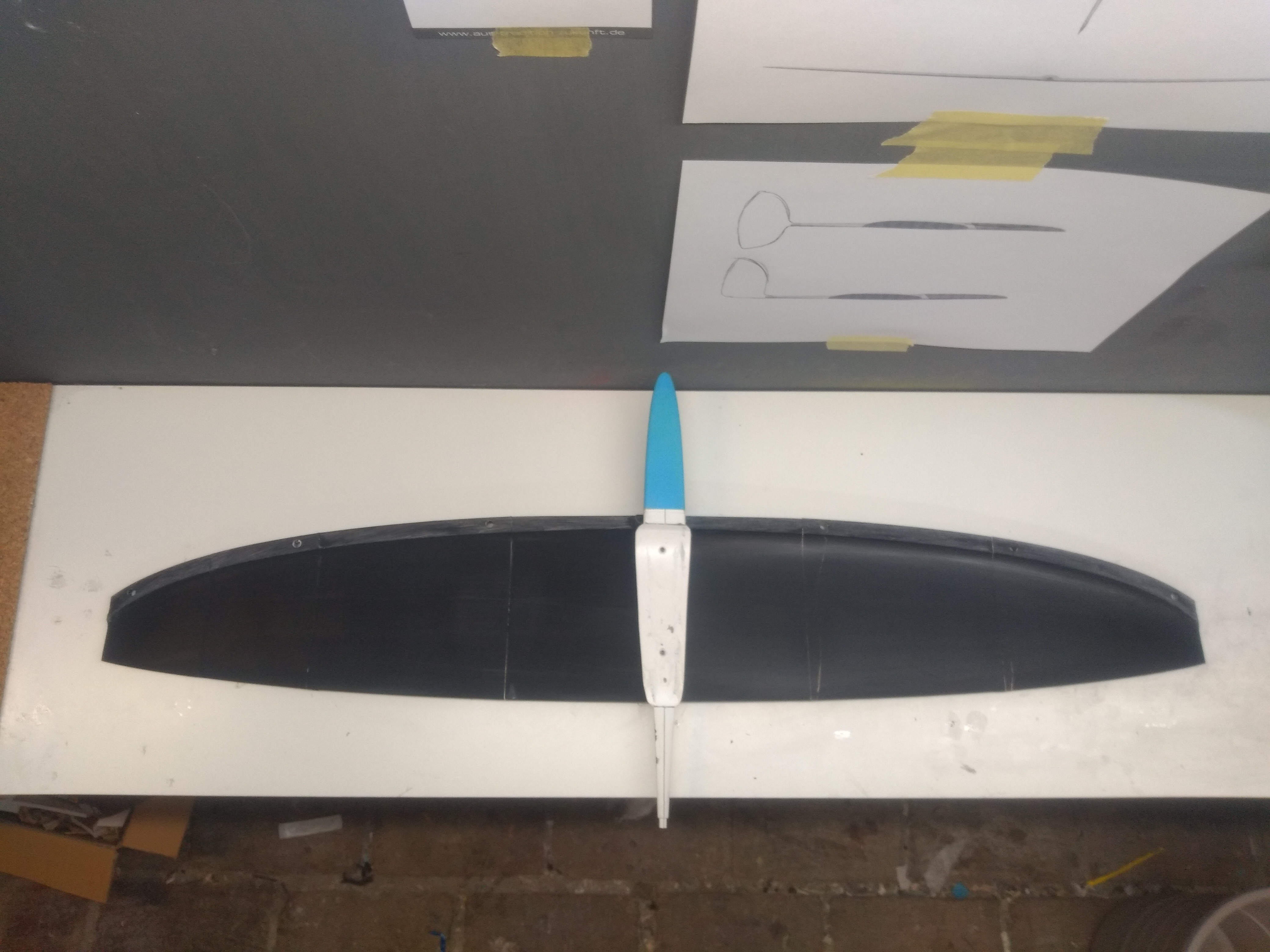 ......deshalb bisher nur ein paar Handwürfe und Flitschenstarts zum Schwerpunkt und Rudernullstellung einstellen.