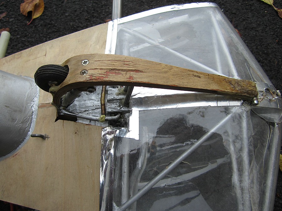 Ich hab dafür bei meiner XIV die Kabinenhaube runter gerissen, ein bisschen Lack aufgetragen und die bisherige provisorische Schaum-Teppichklebeband-Dämpfung der vorderen Kufe durch dieses Gebastel aus Alu, Messing, Silberlost, GFK, Kevlar, UHU plus, Federstahl und Titan ersetzt. Ich bin mal gespannt wie lange das hält. Über Servo einziehbar ist es noch nicht, das hab ich zeitlich nicht mehr geschafft, aber von Hand betätigt funktioniert es gut. Gelandet wird auf der eingezogenen Kufe solange die RC-Betätigung noch nicht drin ist. Auf den Bildern ist die Kufe ausgefahren: