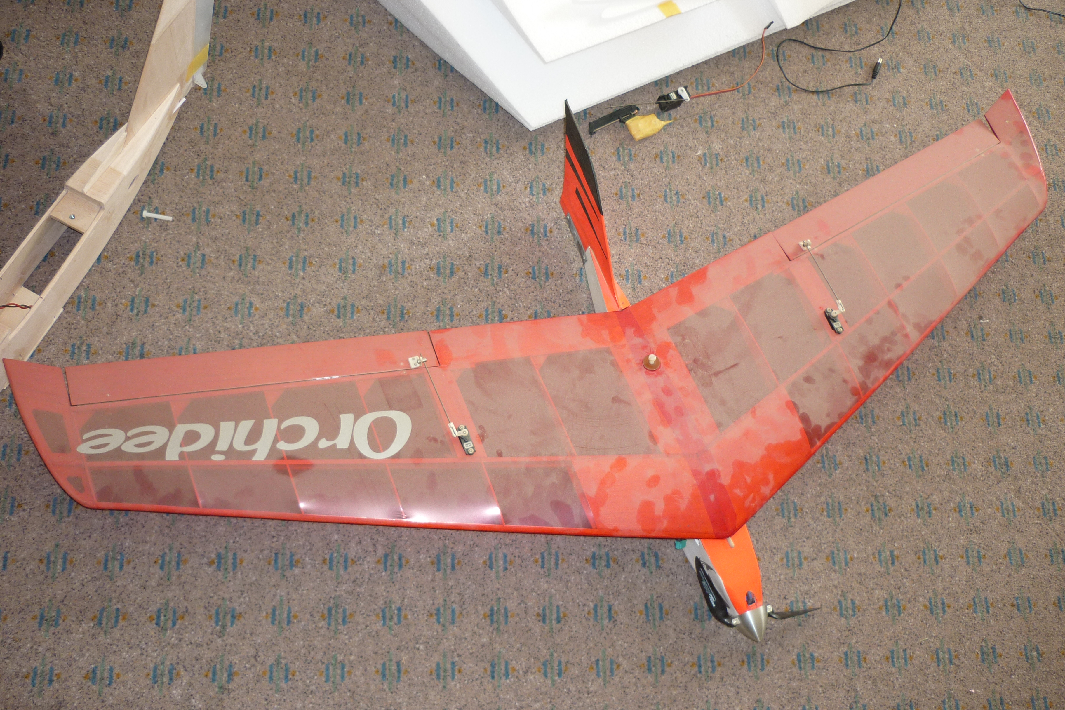 die Tesascharniere muss ich neu machen... die Servos gehn noch...mal sehn... vom Antrieb hab ich null Ahnung