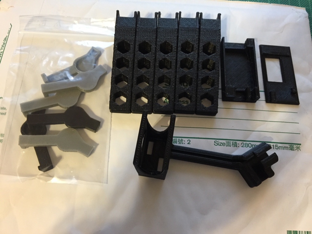 Hebelchen für die seitlichen Schieber der (alten) Taranis, Tricopter-Landebeine, FRSKY-DR4-Sii-Gehäuse und FRSKY XR8R-Antennehalter