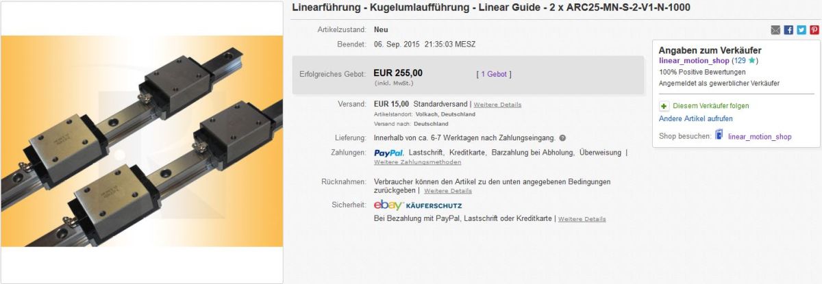 Ein Teil zu meiner zukünftigen Fräse, X und Z Achsen Auktionen laufen teils noch ein paar Tage.