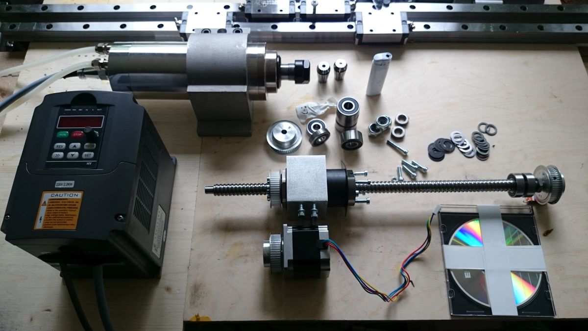 Vorgestern kam die 2,2KW HF Spindel nebst Frequenzumrichter und Halter (der war verhältnissmäsig billig und hat leider noch nicht mal befestigungs Löcher geht eventuell wieder zurück :roll: ) Testlauf auch schon bestanden.