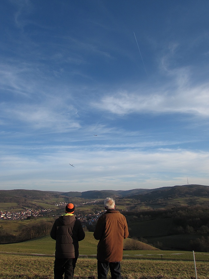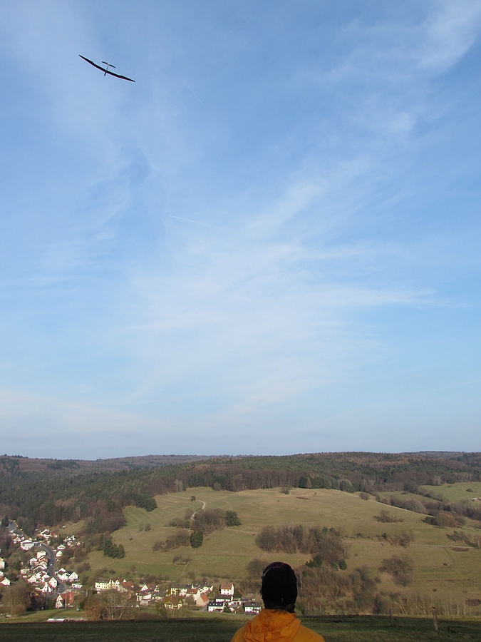 Heute schwacher Wind und schwache Thermik bei ca. + 10 ° am Südhang, aber mit leichtem Gerät oder Absaufhilfe kam doch einiges an Flugzeit zusammen.