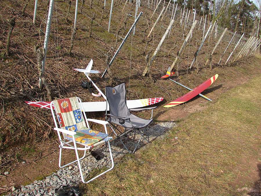 Heute gute Bedingungen bei ~ 3 Bft OSO am Osthang...ohne Schnee und Sitzmöbel