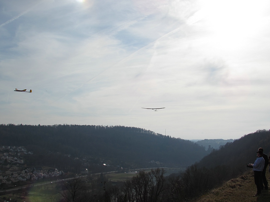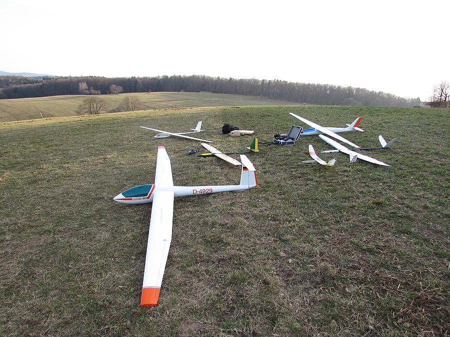Heute war richtig was los am Osthang ! Ich glaube, ich habe so an die 18 Modelle gezählt. Von 1,6 bis 5,4 m war alles vertreten. Alleine 4 Grossegler . Es war bislang der beste Tag des Jahres mit super Gesellschaft!
