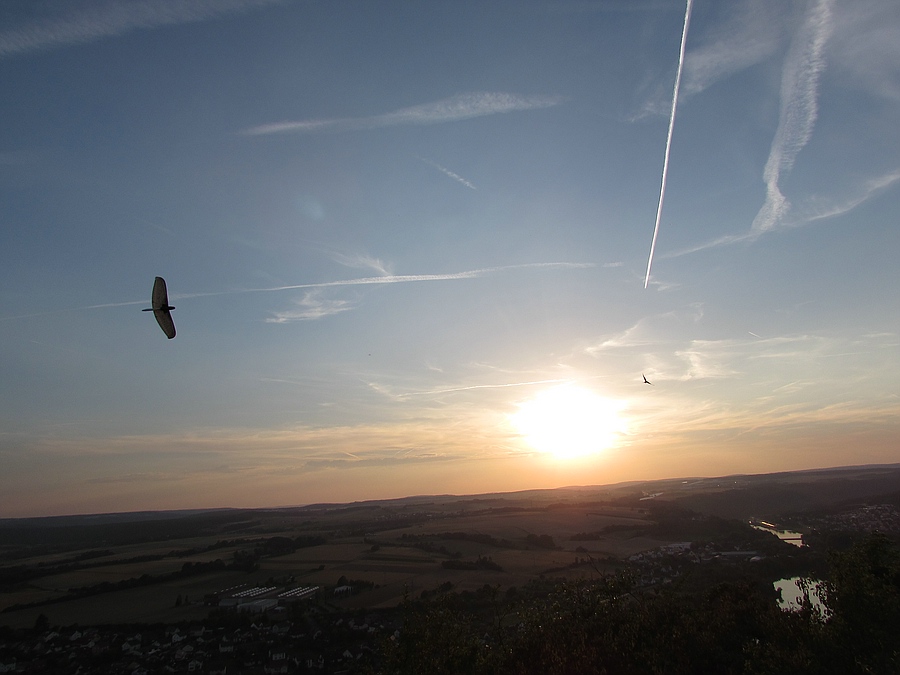 Heute kleines Scandera-Treffen am Felsen. Thomas konnte den kräftigen Wind am Nachmittag noch genießen, aber zu meinem Feierabend war davon nur noch ein laues Lüftchen übrig, mit etwas zusätzlicher Thermik hat es aber trotzdem sehr viel Spaß gemacht .......und das beste Rezept mit mehreren Fliegern im DS-Kreis nicht zusammen zu stoßen ist zu versuchen das andere Modell zu treffen