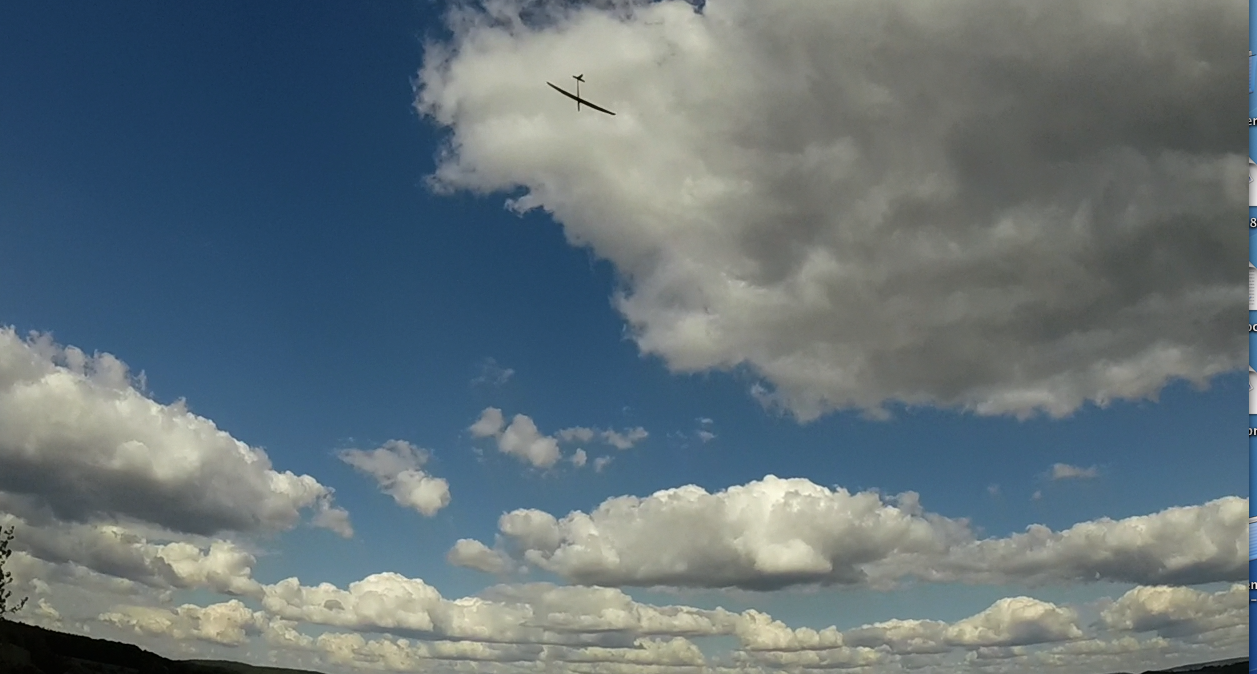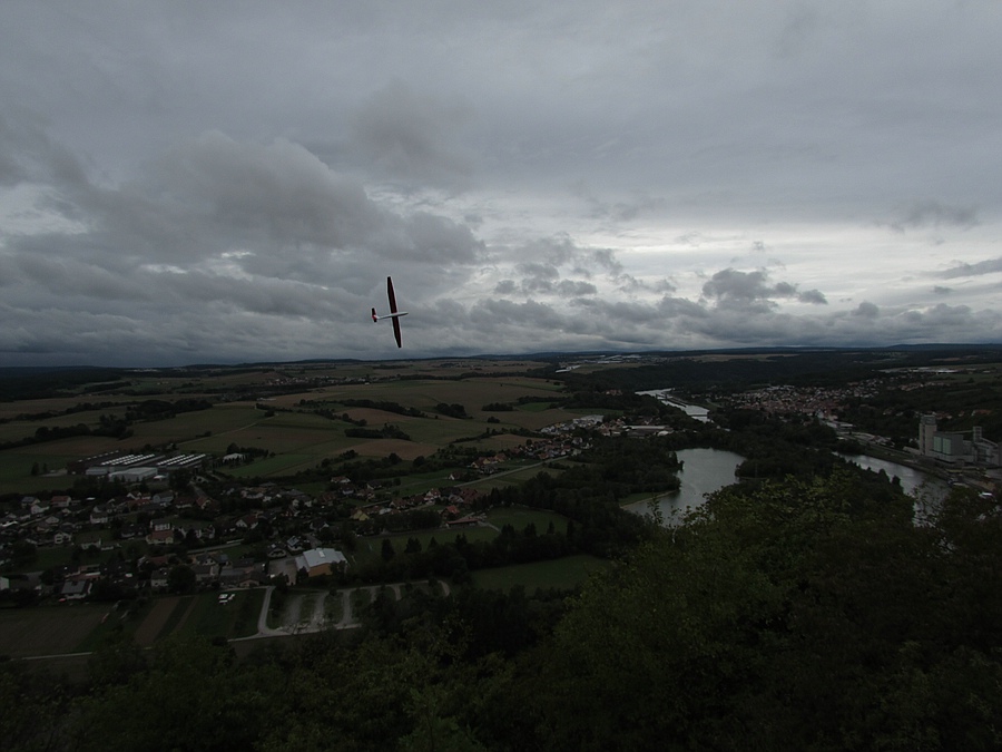 Heute zunächst durchwachsene Bedingungen am Felsen, es gab zwar Wind, aber der kam etwas links und es war sehr thermisch, dadurch gabs immer wieder Phasen mit wenig Tragen und sogar Saufen. Ab halb sechs drehte der Wind dann genau auf den Hang und die Abendthermik sorgte für gutes permanentes Tragen und ein sehr ruhiges Lee für den DS-Turbo, das Pfeifen des Shooter wurde die letzten 1 1/2 Stunden bis 19:30 nur ab und zu durch Scandera-Flüge unterbrochen, sehr Geil