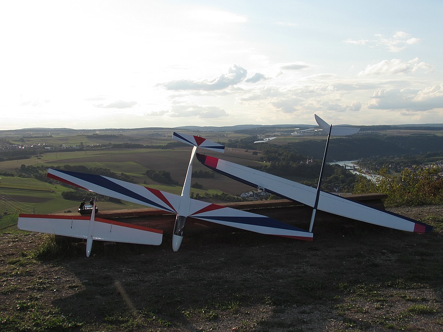 Na dann hoffe ich mal dass der Erstflug der beiden großen Kisten ebenso gut verläuft wie der zweite Erstflug des uralten gelben Salto von Paul nach dem entstauben und überholen. Einiges los am Osthang heute, hat Spaß gemacht, auch wenns zwischendurch öfter mal starkes Saufen hatte und bei ~ 200 m ein Deckel drauf war...ein sehr schöner Tag mit viel bruchfreier Fliegerei und Abschluß beim Hangwirt, denn der Modellpilot lebt nicht nur vom Fliegen alleinitalouwe hat geschrieben:Erstflug hat sich wegen erstens schlechtem Wetter und zweitens faulem Konstrukteur auf kommendes Wochenende verschoben. Da ist er aber fest geplant, zusammen mit Lorenzos sechs Meter ASH 26.