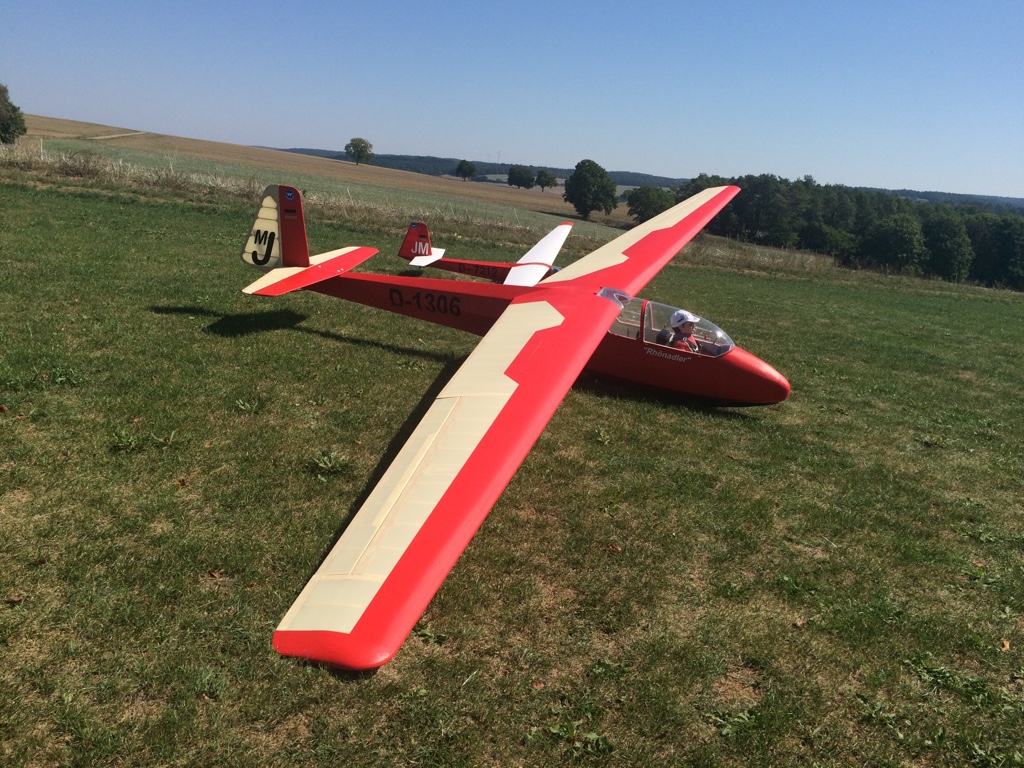 Nach 2 Jahren Bauzeit durfte ich heute die 1:3er Ka7 von meinem Dad einfliegen. Da er ein bisschen Muffensausen und Neber meiner Wilga noch ein anderer Schlepper am Platz war, durfte ich die 15kg mit 5,33m einfliegen. Der Erstflug verlief absolut stressfrei, total klasse. Die restlichen Flüge hat dann mein Dad selbst gemacht, außer die Schlepps ;-) leider war es so heiß das die Luftreifen meiner Wilga geplatzt sind. Das hatte ich so auch noch net :(