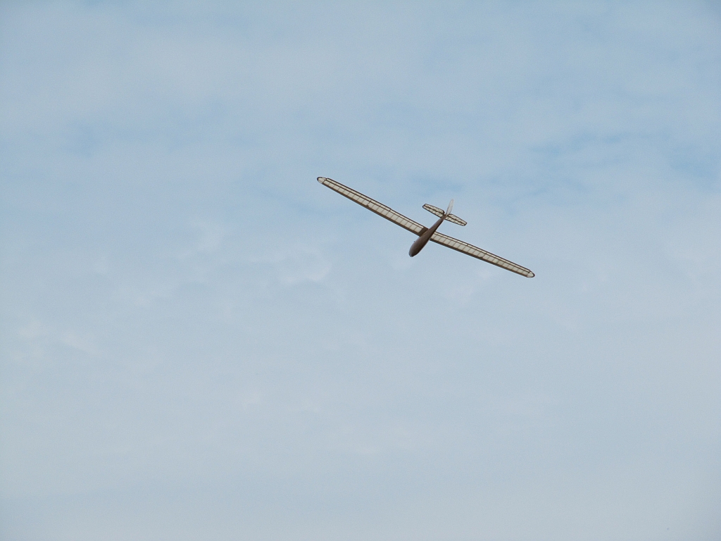 Meine große Horten XIV hatte mehrere schöne Flüge. Beim längsten Flug hab ich bei einem tiefen Überflug zuerst gedacht der Pilot hätte auf die Innenseite der unteren Cockpitverglasung gereihert, aber es war nur seine Fliegerbrille die er verloren hatte :mrgreen: .