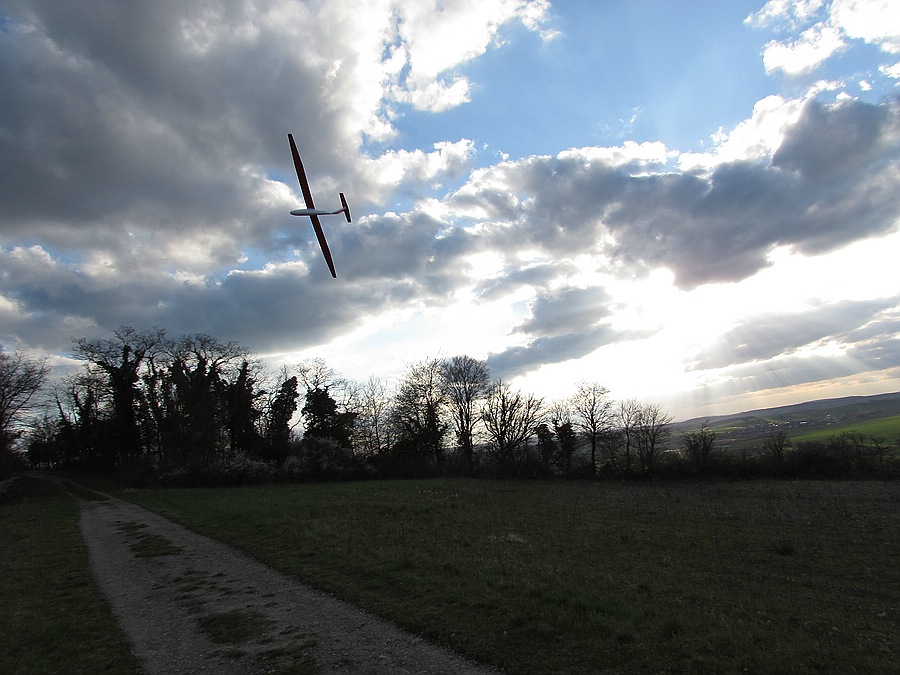 Schwache Bedingungen bei nicht optimal passender Windrichtung. Trotzdem konnte das ein oder andere Thermikbläschen ausgekreist werden, so dass doch wieder ein bisschen Flugzeit bei schönem und warmem Wetter gesammelt werden konnte.