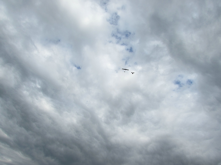 Heute schwacher Wind aus Ost mit etwas Thermik, die aber bald wieder wegen naher Gewitter einschlief.