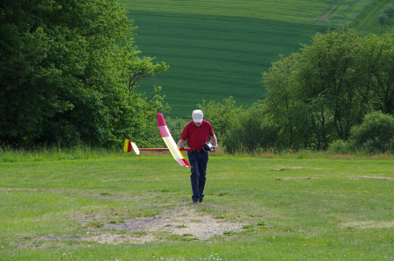 Beim Bird ist im Flug ein Querruderservo stehen geblieben, zum Glück genau in Mittelstellung, und sogar das Landen mit nur einem Querruder ohne Landehilfe ging sanft und bruchfrei. Trotz des notwendigen Servotausch ein schöner Abschluss des Pfingstwochendes, das hier gar nicht so verregnet war wie vorausgesagt. :thumbup:
