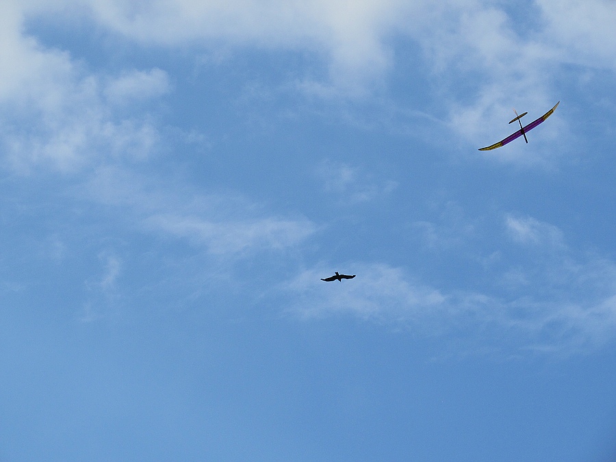 Auf dem Heimweg hab ich nicht weit von meinem neuen Elektroflughang noch 6 Bussarde und einen großen Pulk Schwalben gesehen die irgendwo Aufwind gefunden haben, wie machen die das nur, es ging heute doch gar nichts........"
