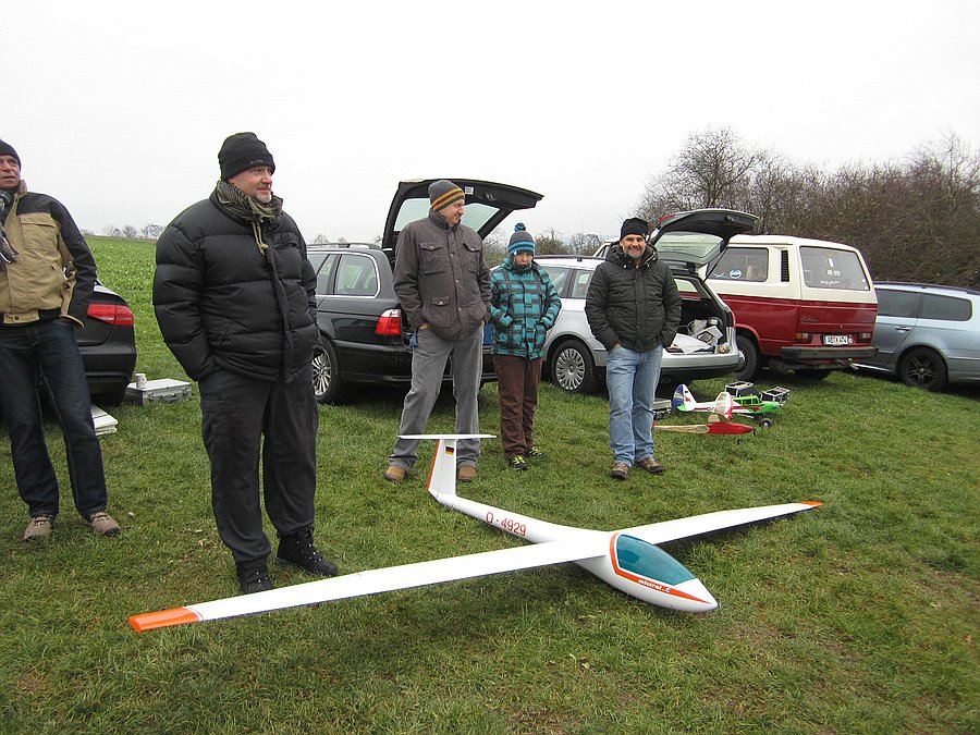 Heute war Roll Out. Zuerst im heimischen Garten; dann konnte er heute Mittag am Vereinshang der Spessartsegler im Rahmen unseres Nikolaus-Fliegens der " Öffentlichkeit" präsentiert werden. Leider war das Wetter nicht so, dass ich einen Erstflug wagen wollte, aber jetzt kann ich nach der langen Bauzeit auch noch ein bisschen auf geeignetes Erstflugwetter warten