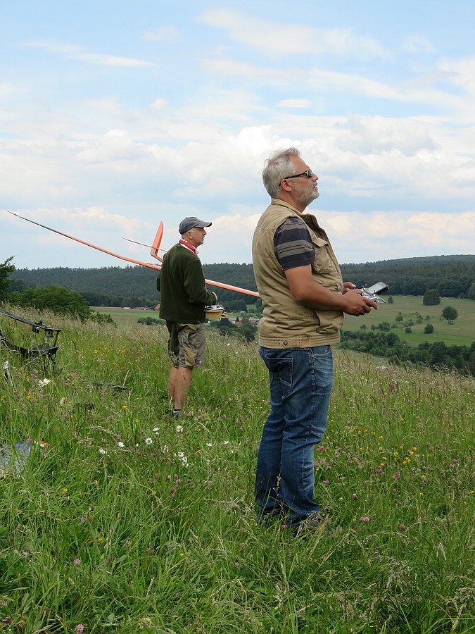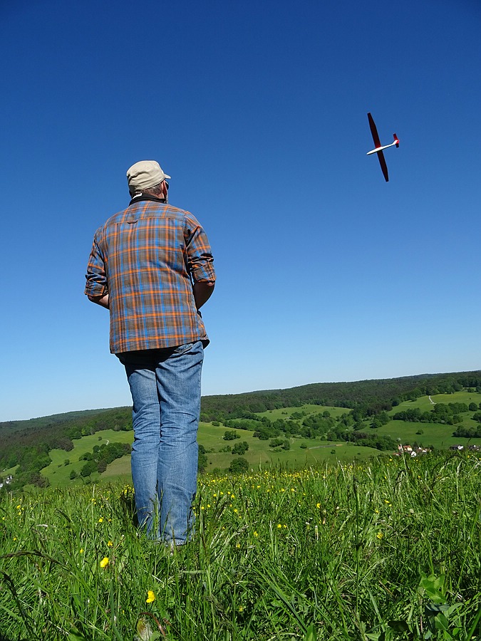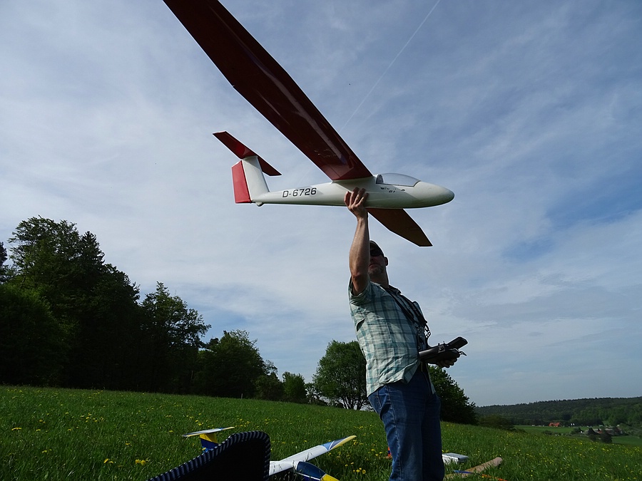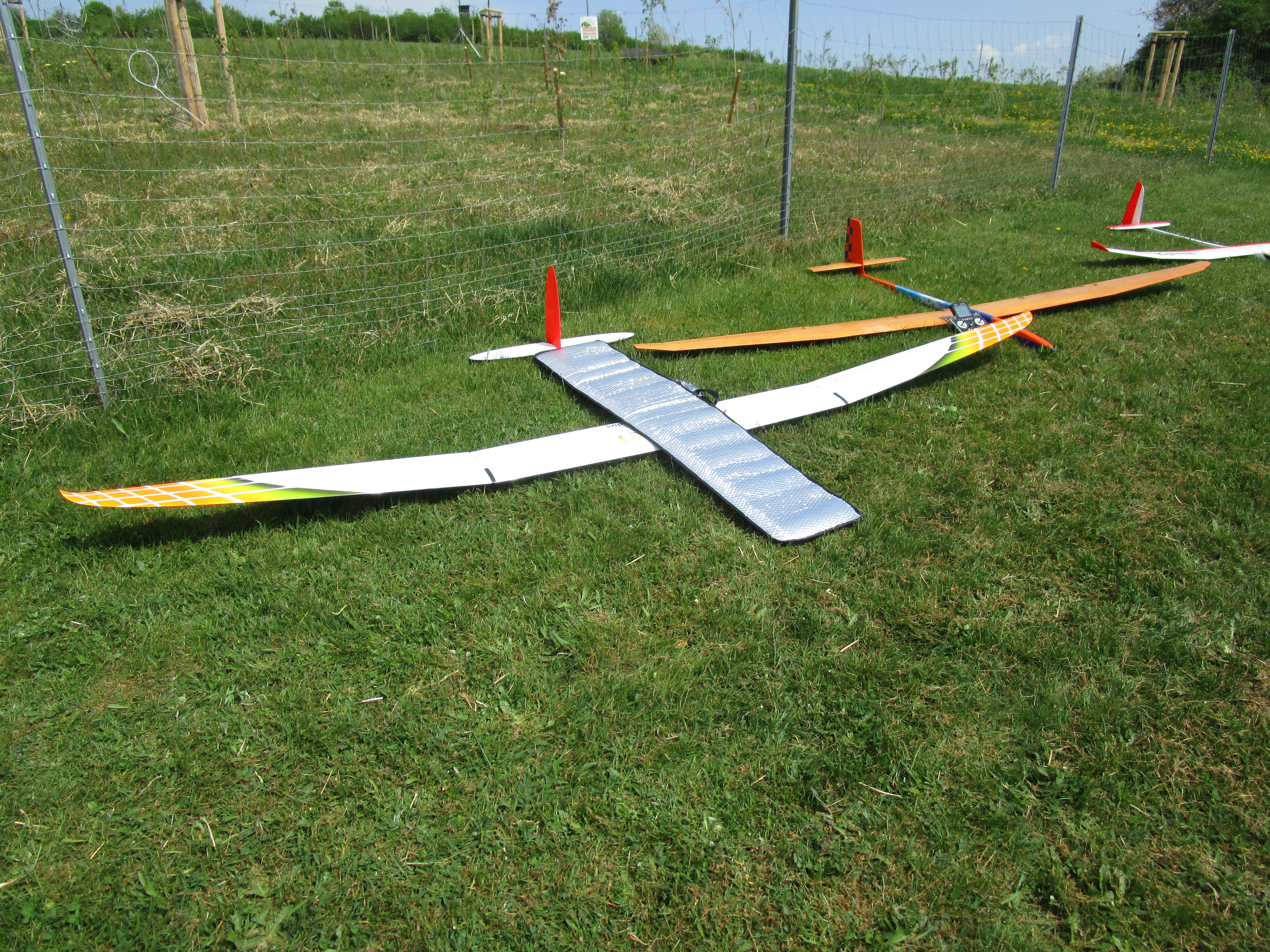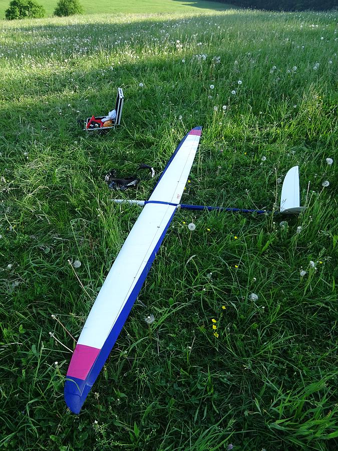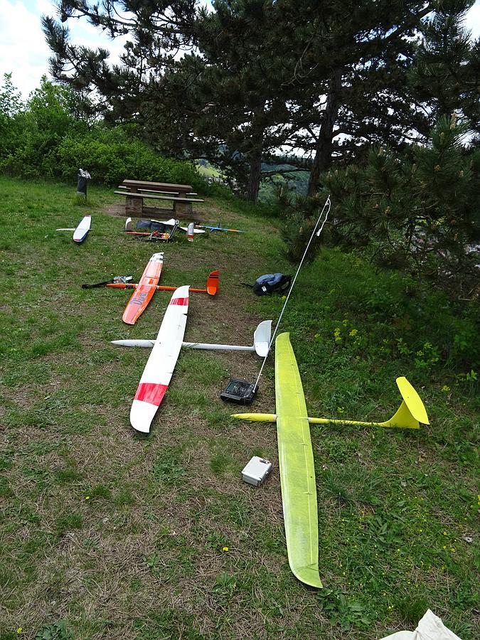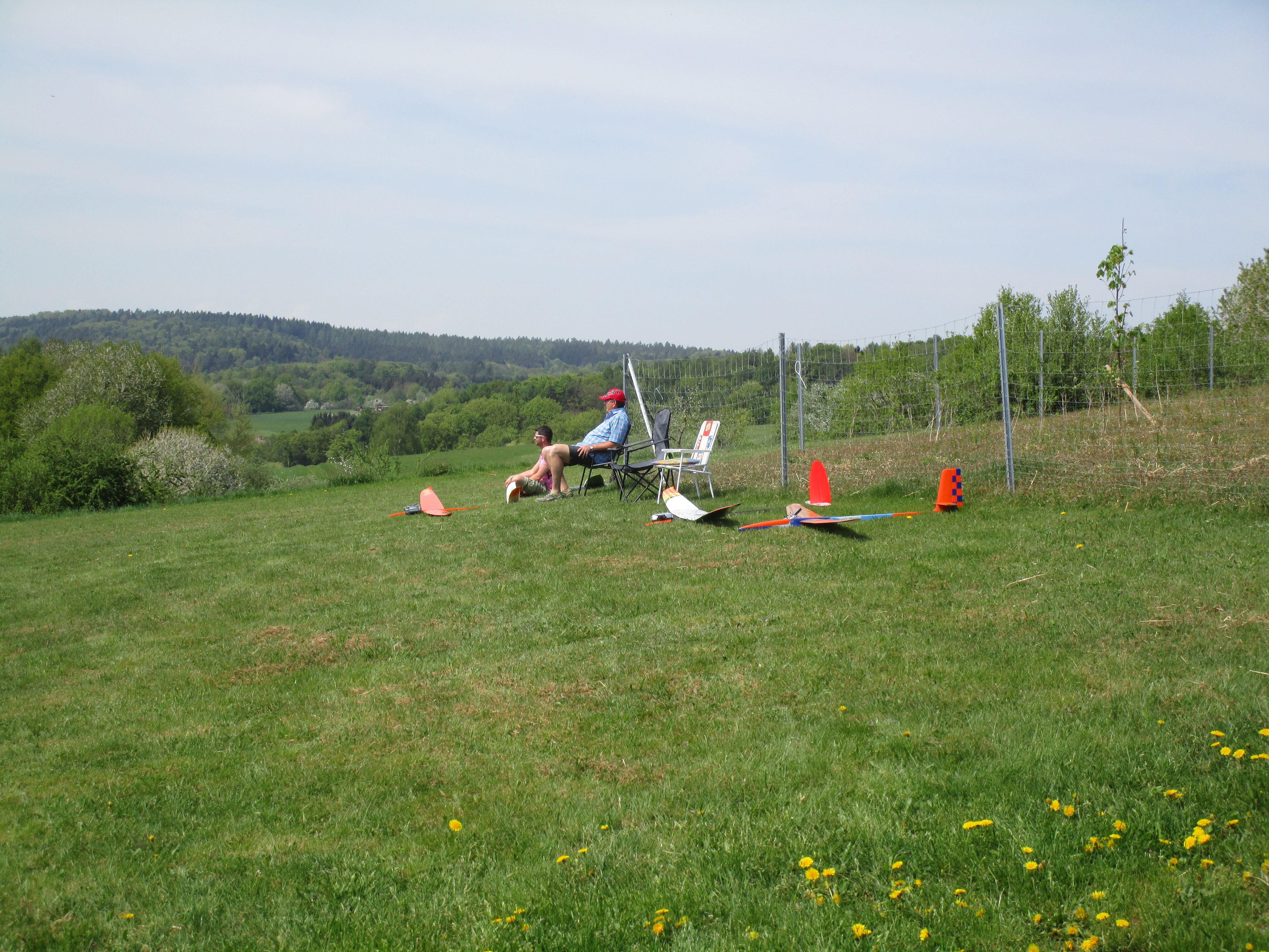 Der Hangwind reichte nicht, aber einige Thermikblasen ermöglichten dem DFS-Reiher Eigenbau von Jürgen und meiner B4 ein paar schöne Flüge. Für den Avatar reichte es sogar um permanent oben zu bleiben, da konnte ich bei dem schönen Wetter erst nach 2 Stunden aufhören und wieder einpacken